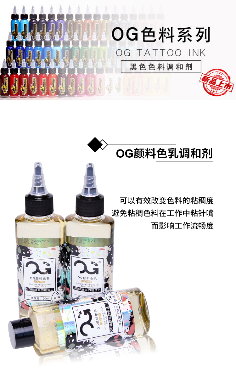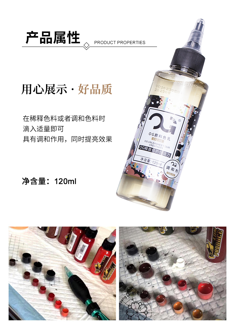 新款OG彩色纹身颜料调和剂色料粘稠稀释液色料调和液120ml惊蛰器材