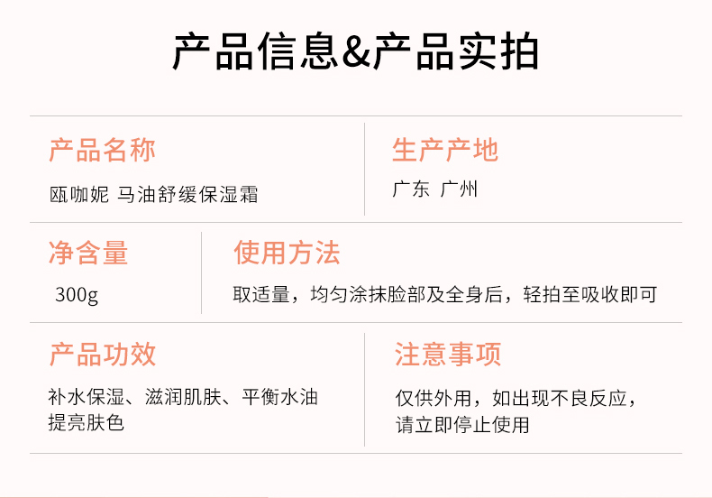 瓯咖妮马油舒缓保湿霜300g