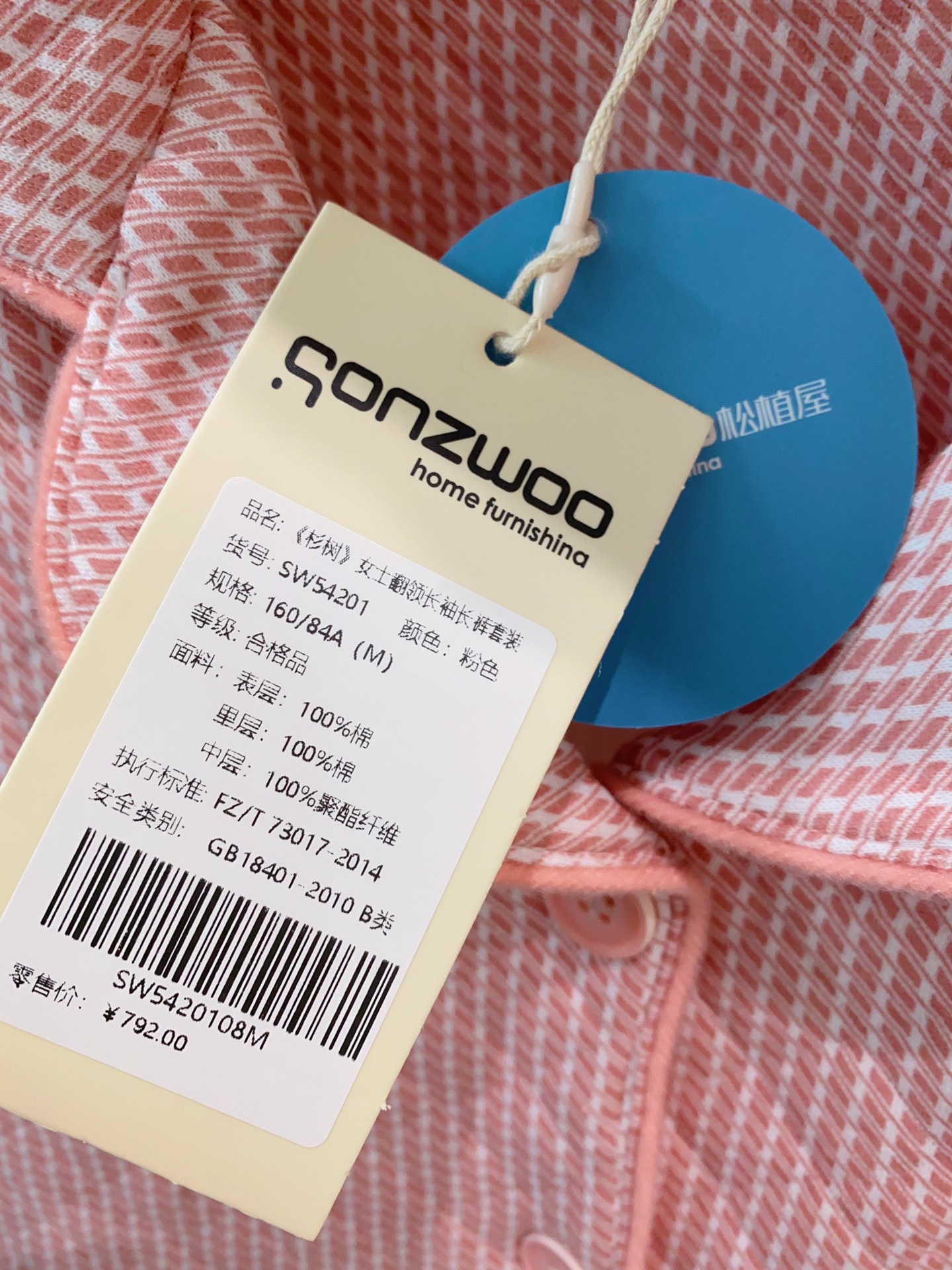 面料:100%棉