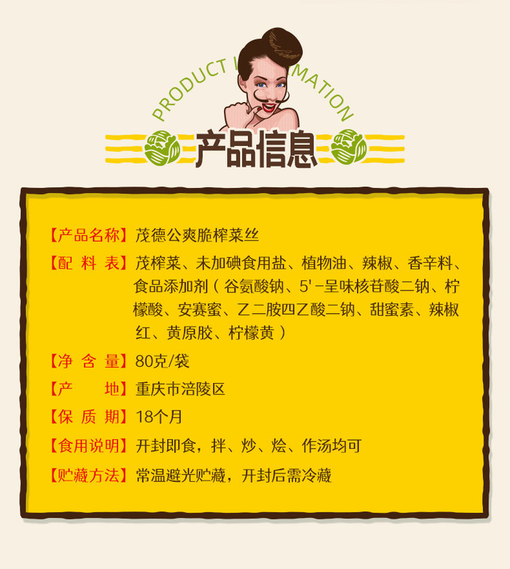 茂德公清爽榨菜鲜脆菜丝80g*5袋/10袋/20袋酱菜泡菜下饭菜咸菜小菜早餐配粥