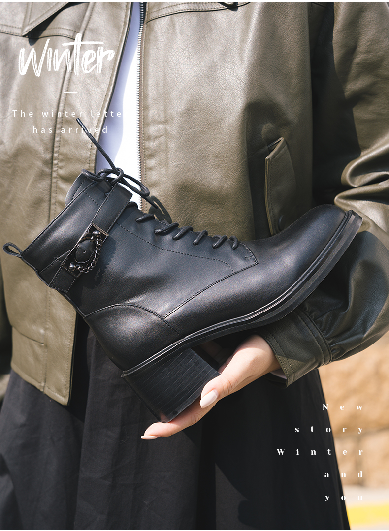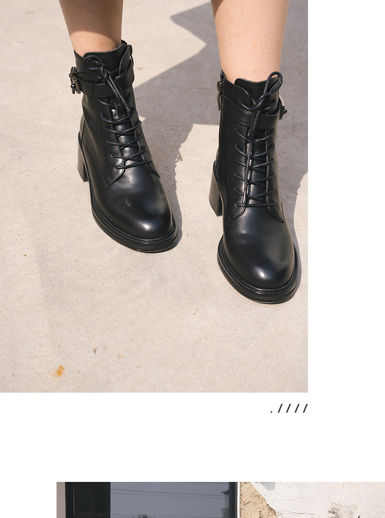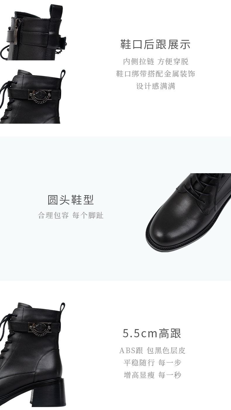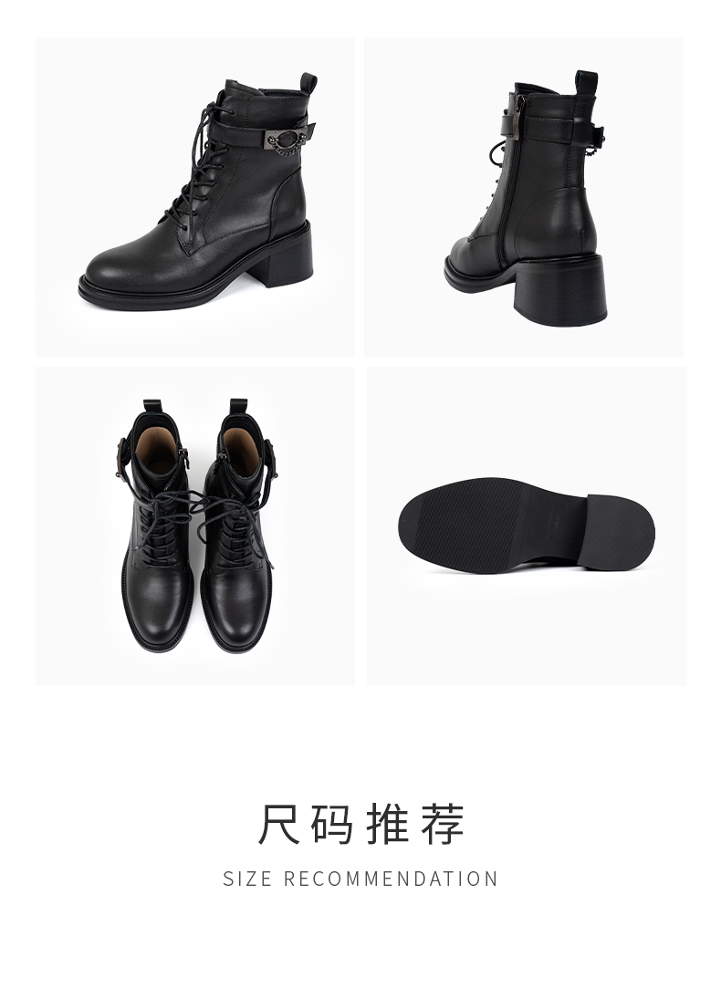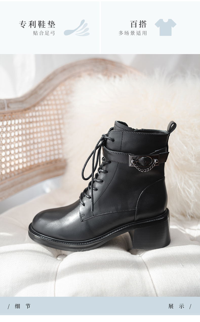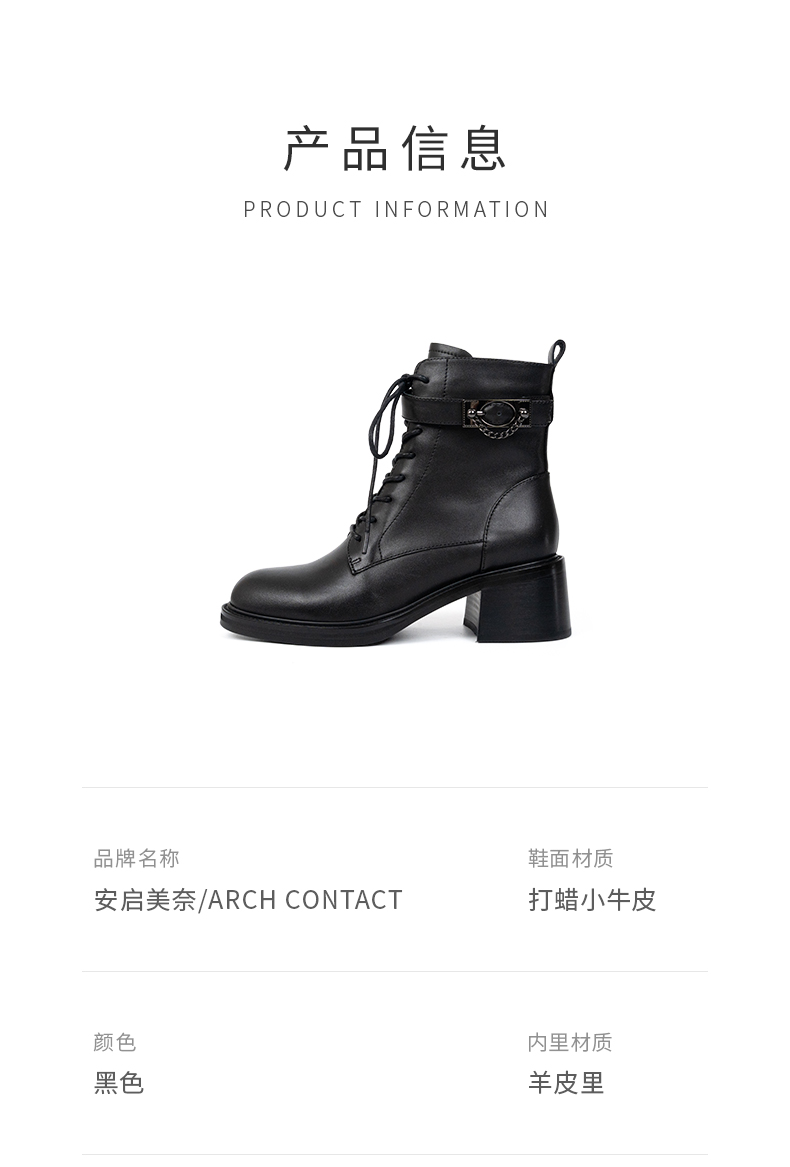 ARCHCONTACT安启美奈圆头舒适粗跟绑带女靴52873-1