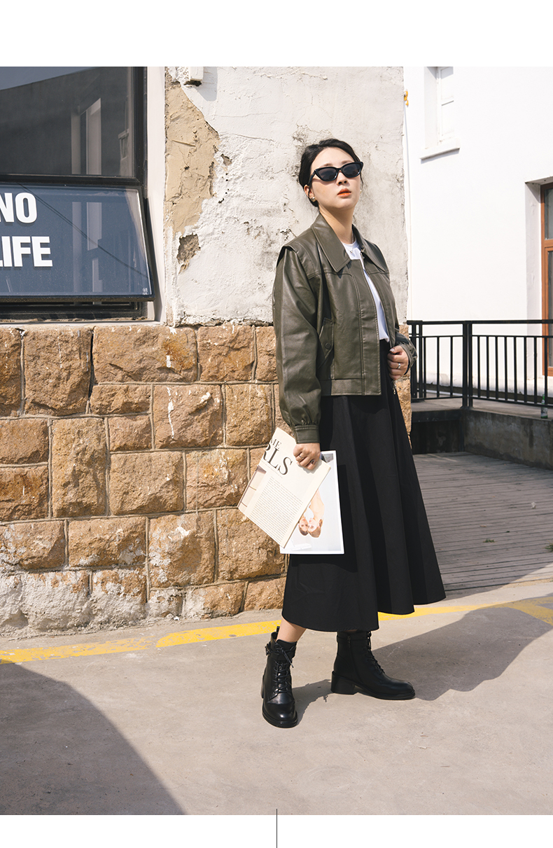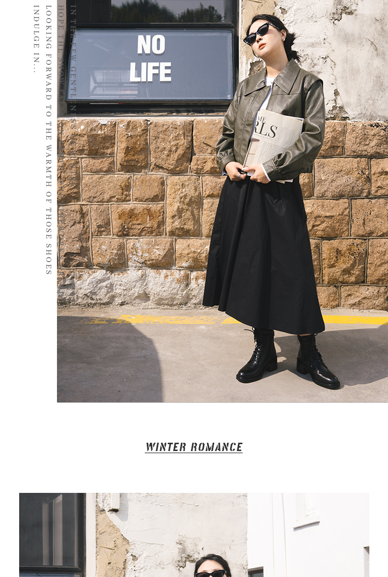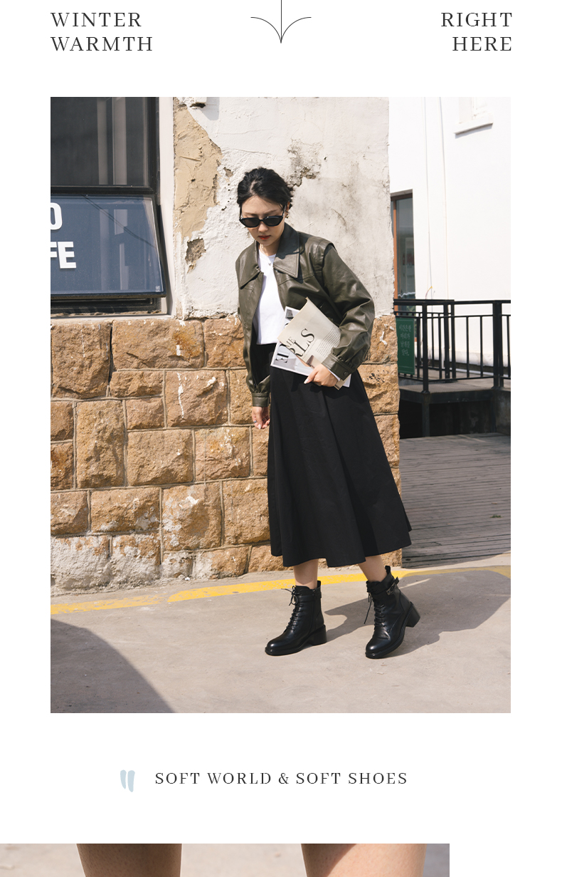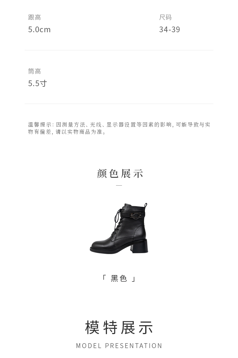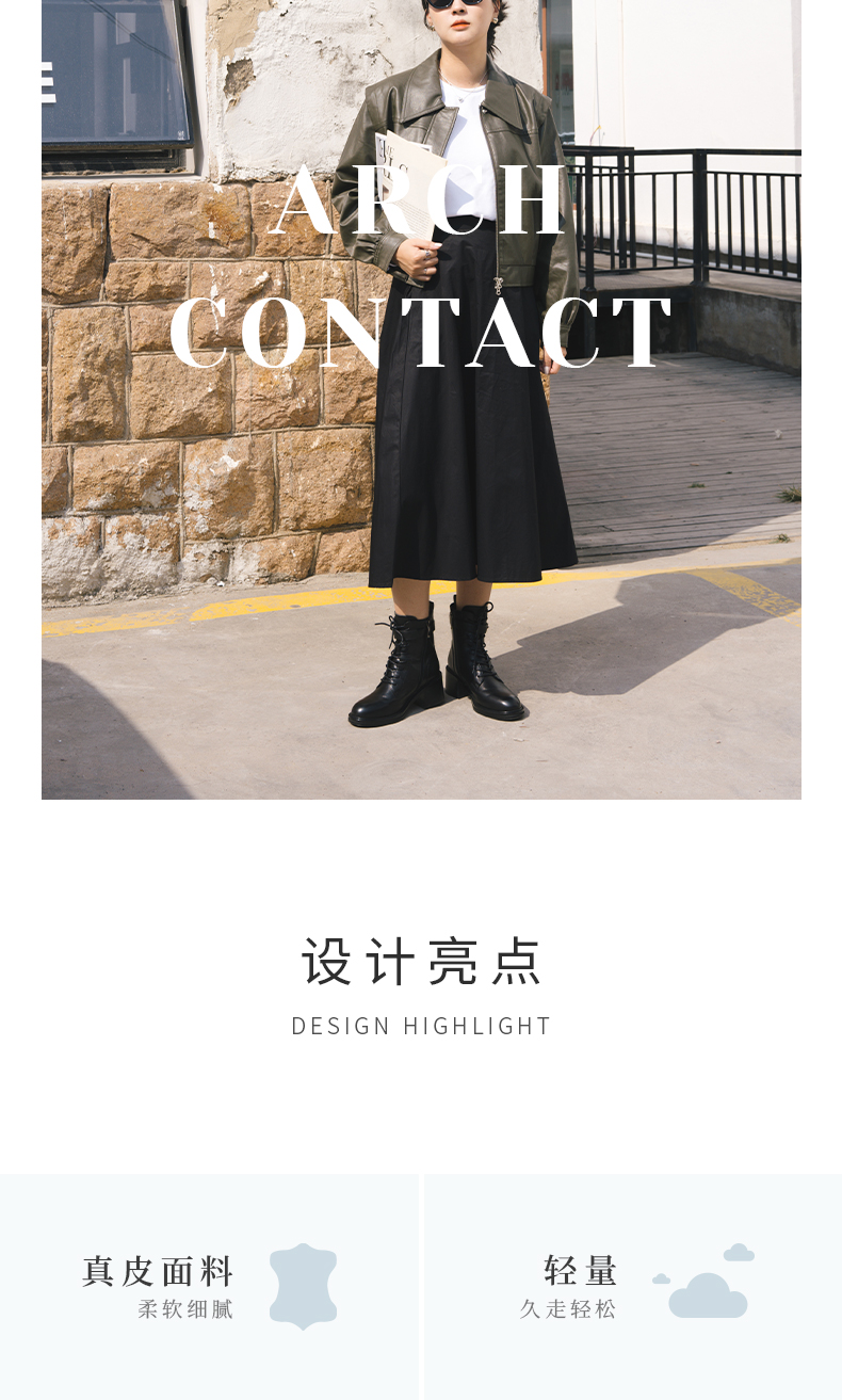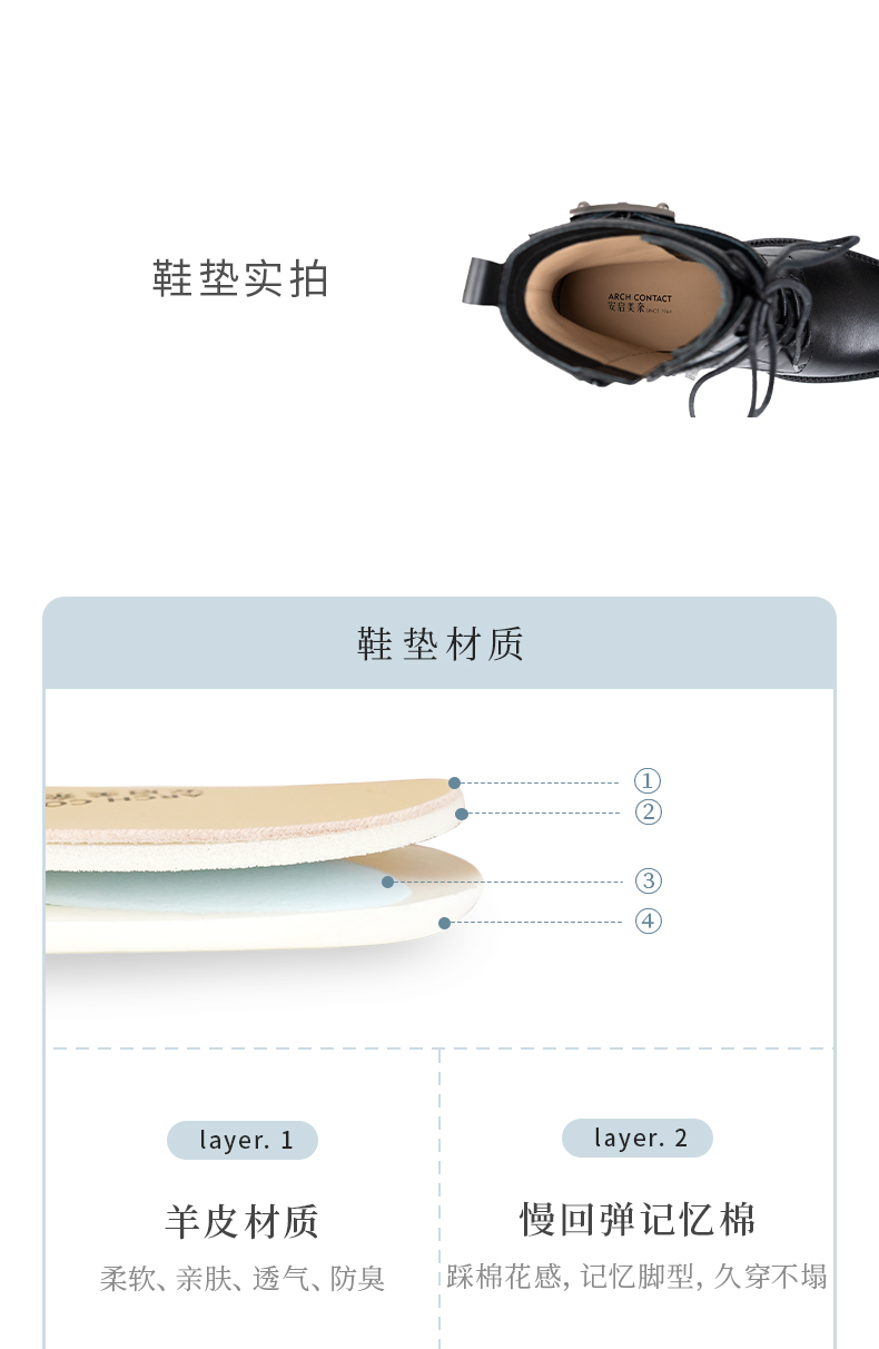 ARCHCONTACT安启美奈圆头舒适粗跟绑带女靴52873-1