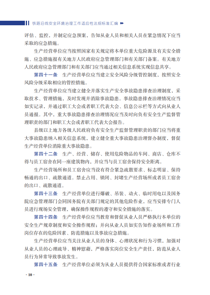 为适应铁路外部环境安全督查的需求,有效提高铁路沿线地方政府及相关部门对外部环境隐患严重性的认识,编委会对我国现实行的与铁路外部环境安全相关的法律法规、部门规章和技术导则等进行了收集和整理,汇编成书,旨在落实铁路外部环境安全监管责任,督促铁路运输企业全面开展隐患排查整治,协调督促地方政府落实综合整治主体责任,加大铁路外部环境安全监管执法力度,积极推进铁路安全防护工程,协调推进相关法规标准建设。