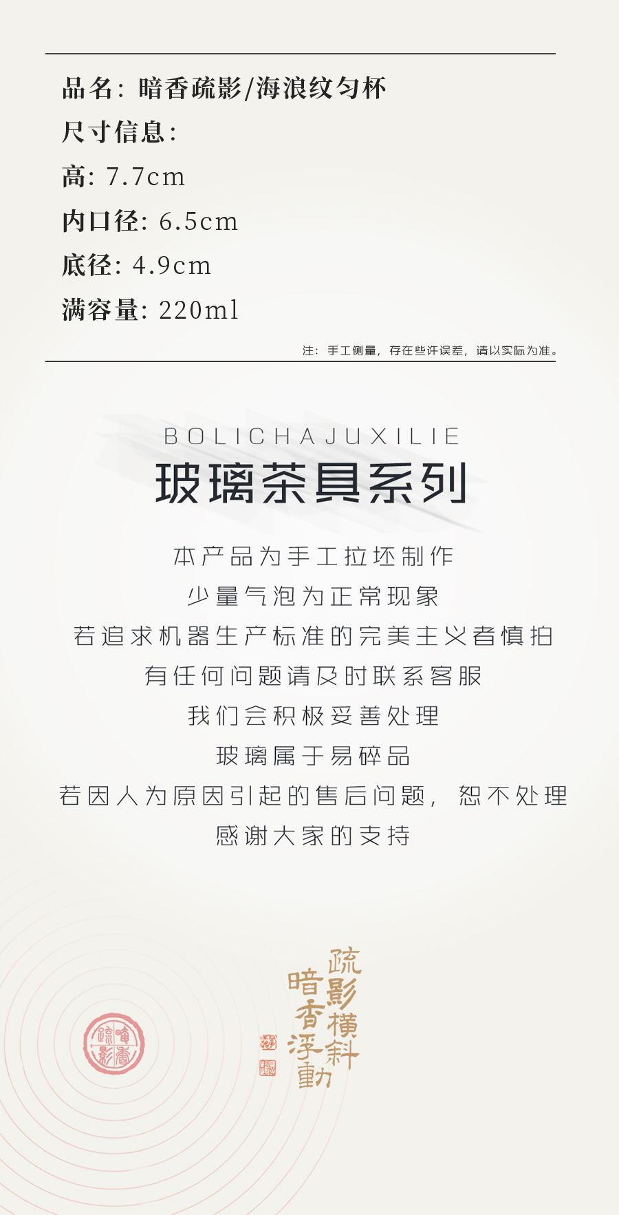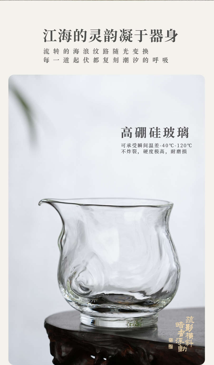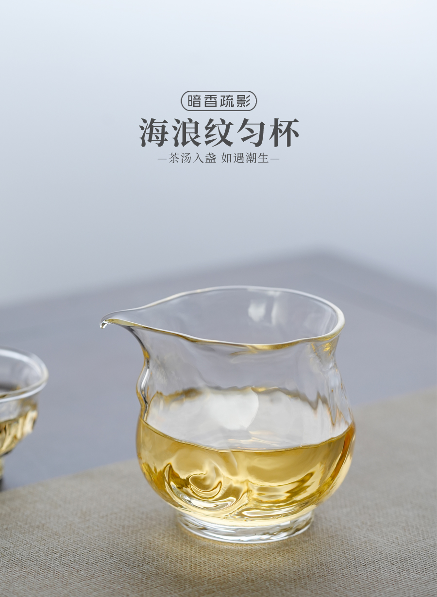 暗香疏影/海浪纹匀杯/无耳茶海无把玻璃公道杯家用耐高温茶具中式茶海
