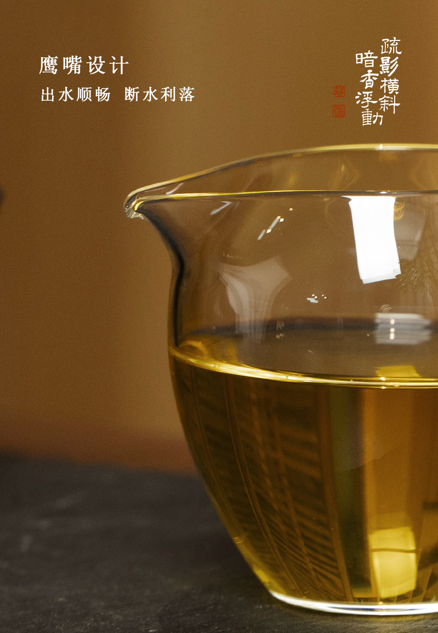 暗香疏影巧文匀杯晶彩系列高硼硅玻璃分茶器家用茶海