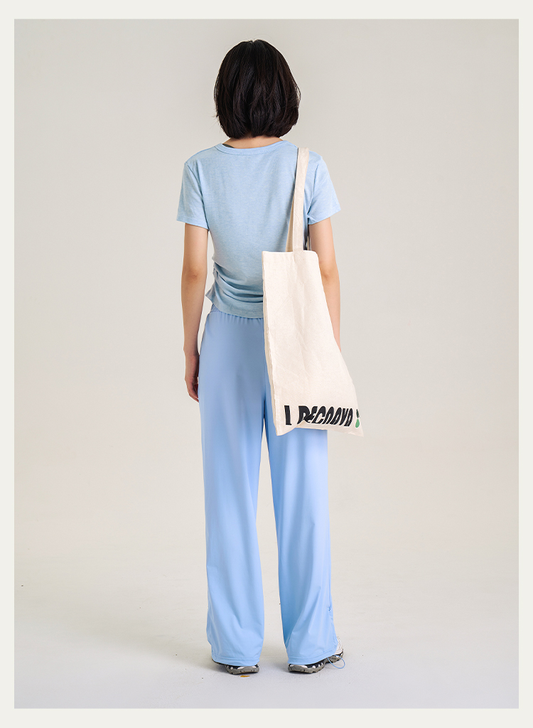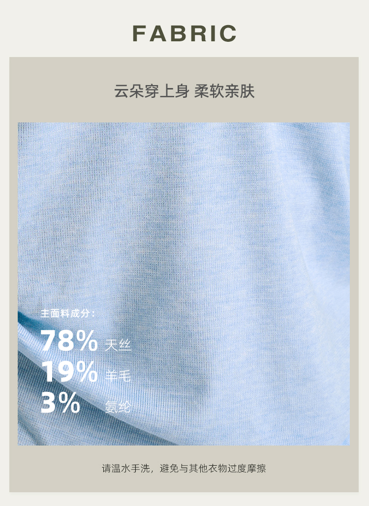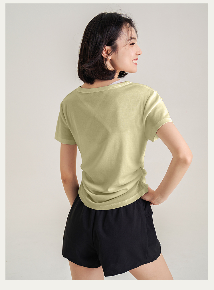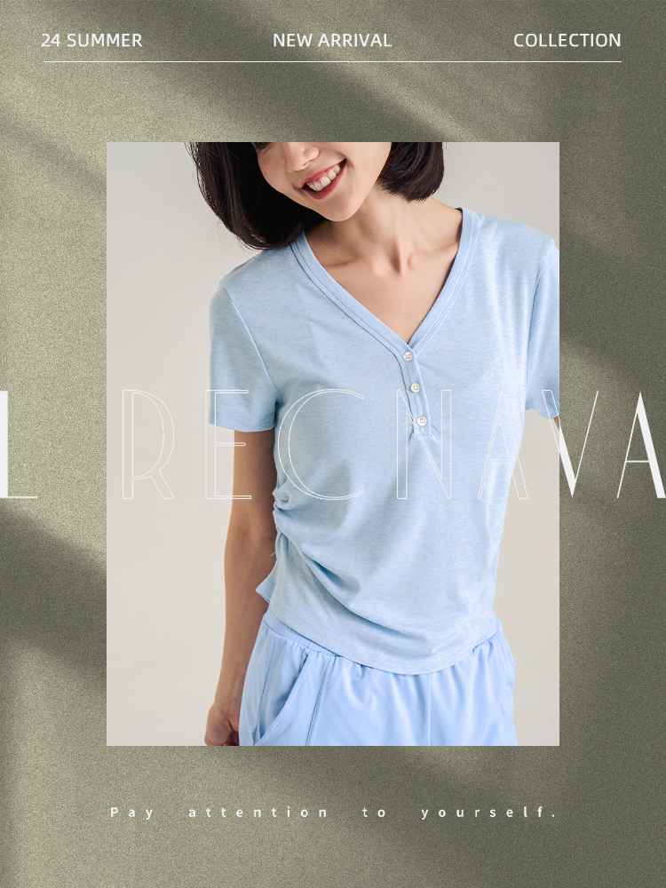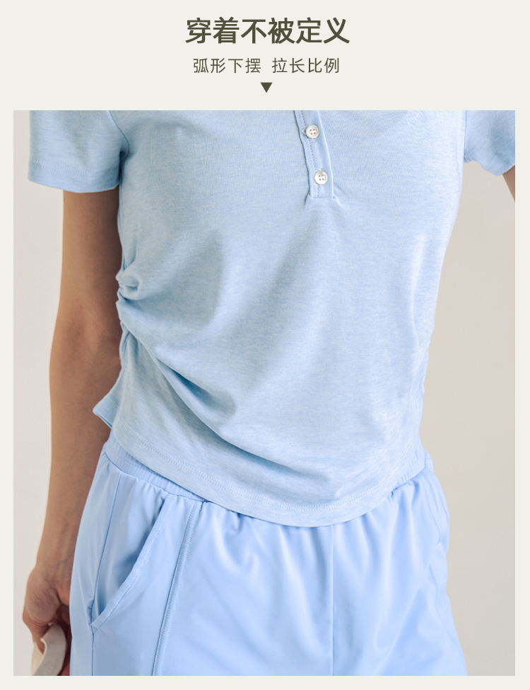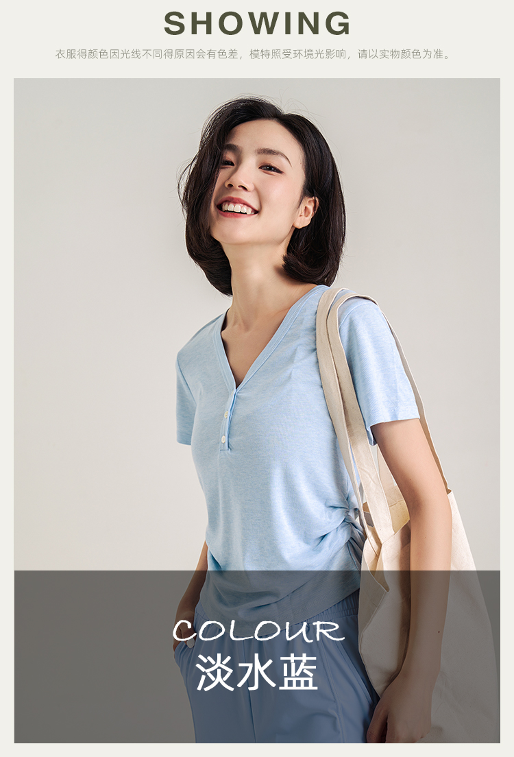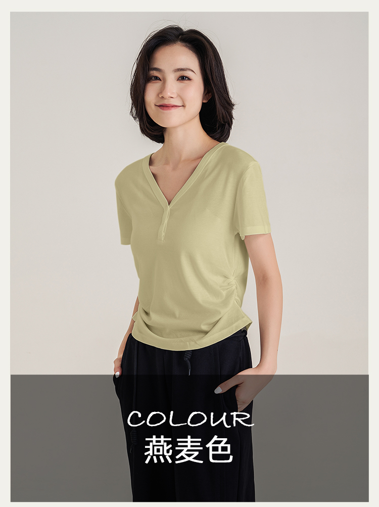 【天丝+羊毛】V领纽扣短袖T 腰部松紧显腰细 羊毛修身短袖上衣