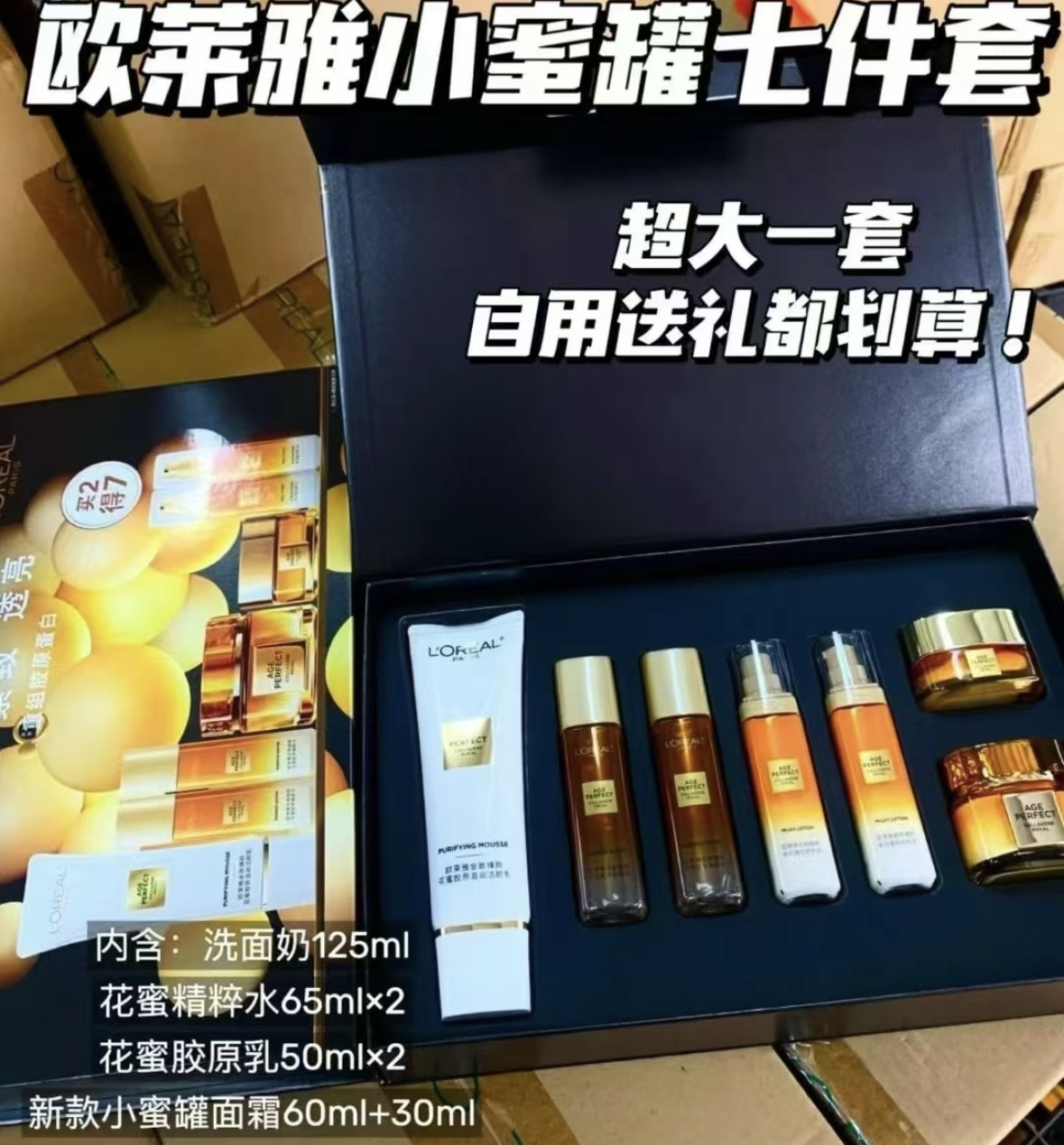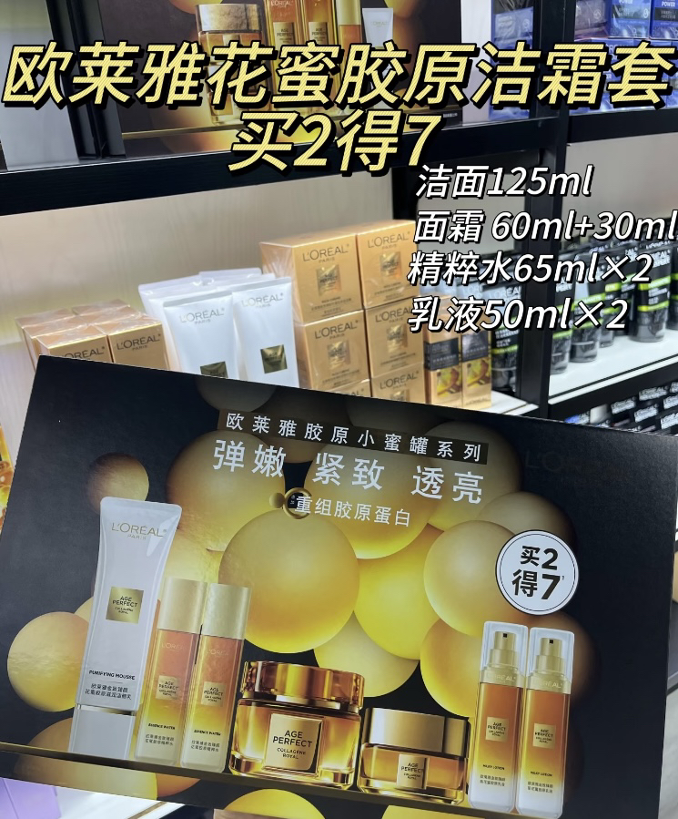 欧莱雅胶原小蜜罐系列洁霜套装保湿修护舒缓抗皱紧致 买2得7礼盒
