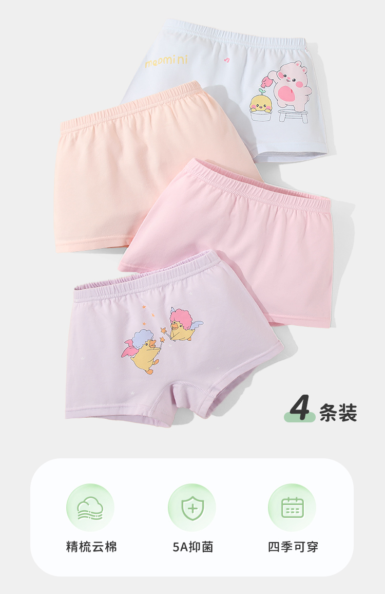 【5A抑菌 4条装】【100-140】【MQDmini】女童平角内裤