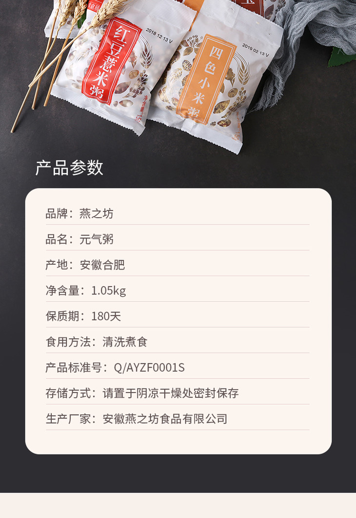 【燕之坊】元气粥1.05kg 香糯醇甜 原产品直采原粮 红豆薏米薏仁八宝紫薯黑米绿豆百合小米糙米莲子 五谷杂粮粗粮粥原料 全家共享