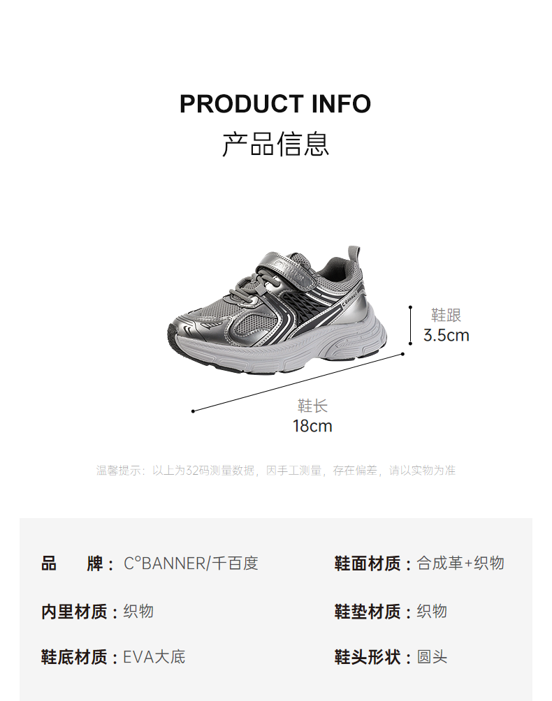 千百度2026春季童鞋安全魔术贴 牢固耐用老爹鞋A26193067