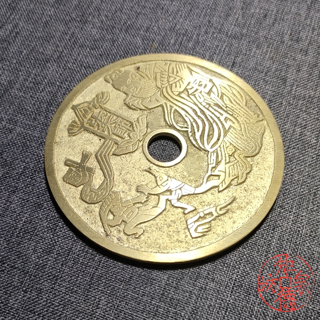 古法翻砂铸造,非遗传承。限量制作。 纯铜古法母钱翻砂铸造而成,容易上包浆。可用于文房镇纸、茶宠、杯子托、文玩垫、手把件…… 直径约72.9毫米,厚约4.2毫米,重约90.5克(手工作品有少许误差,请知晓)。 所用的原材料采用纯铜,遵循古法、严格按照古代官铸配比;矩德泉坊手作铜币所使用的母版,采用古代真母钱直接复刻,或利用钱币拓片,纯手工雕刻母版,按照古代翻砂工艺制作,铸造后的每一枚钱币,采用手工打磨,修刀所用照片无任何优化、美图。手作铜币严格遵循古代翻砂铸造、打磨工艺进行复刻,不是现代量产的冲压工艺,所以很难做到每一枚的表面痕迹保持一致。 为了尽量还原古代钱币的文字神韵与时代铸造特征,每一枚都进行手工修刀、打磨。会有打磨痕迹、刻刀痕迹,铸造气孔或者微小沙眼,这正是手工与机器制作的区别,并非瑕疵。