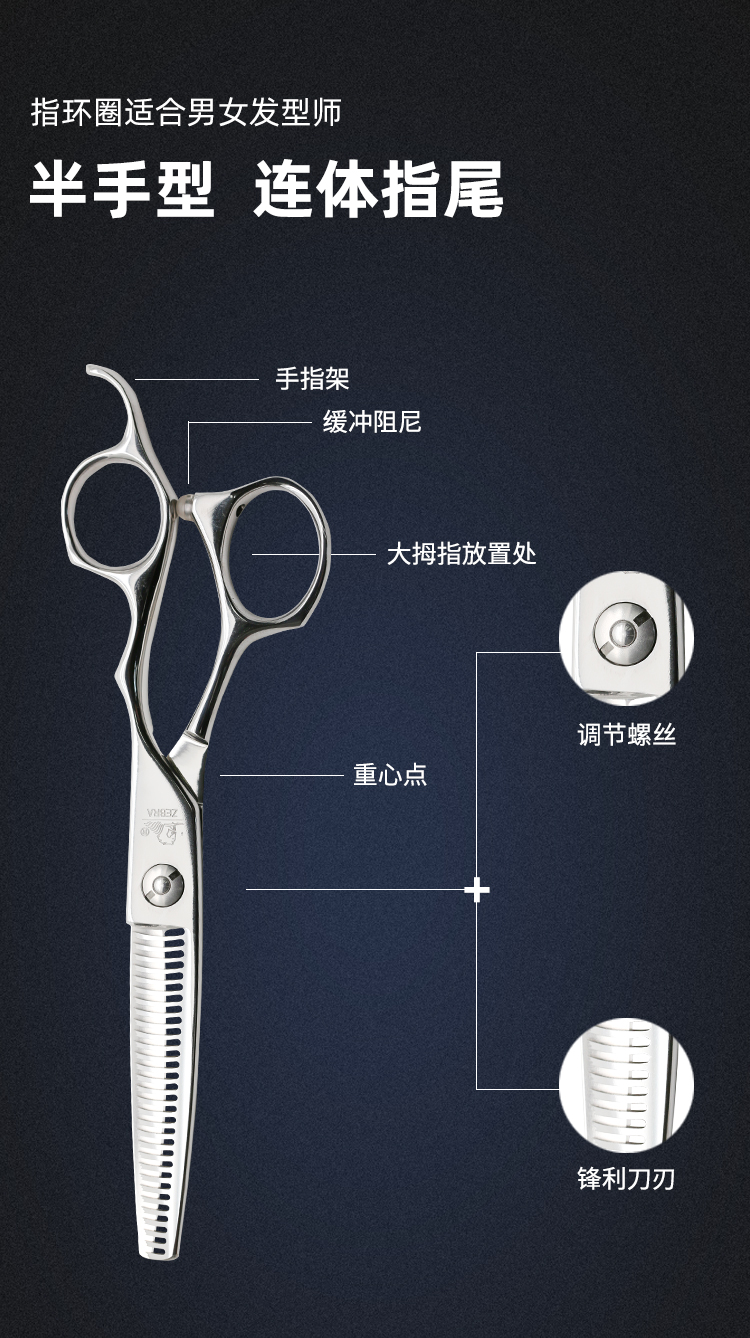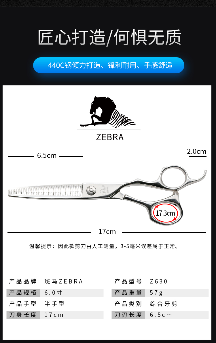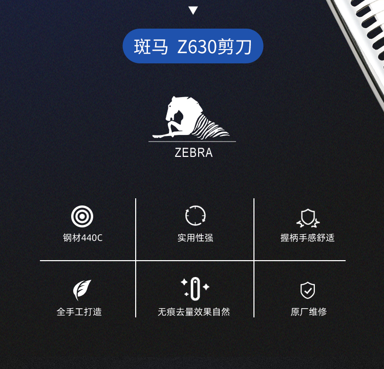 ZEBRA斑马 牙剪 Z630 牙剪/调量剪/综合牙剪/打薄剪/去发量35%-40%/ 鹿角齿/30根齿/正刃/6寸