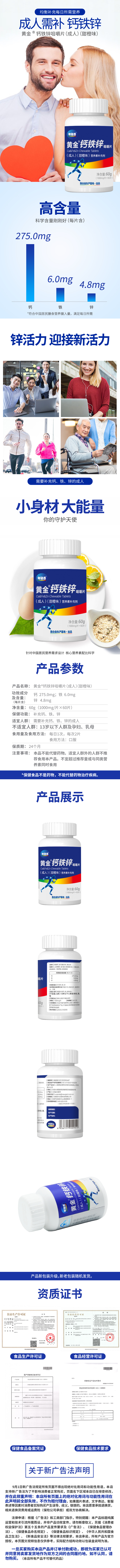 【脑白金出品】年轻态黄金钙铁锌咀嚼片 成人版甜橙味营养素补充剂 1000mg/片*60片/瓶 有效期至25.12.26