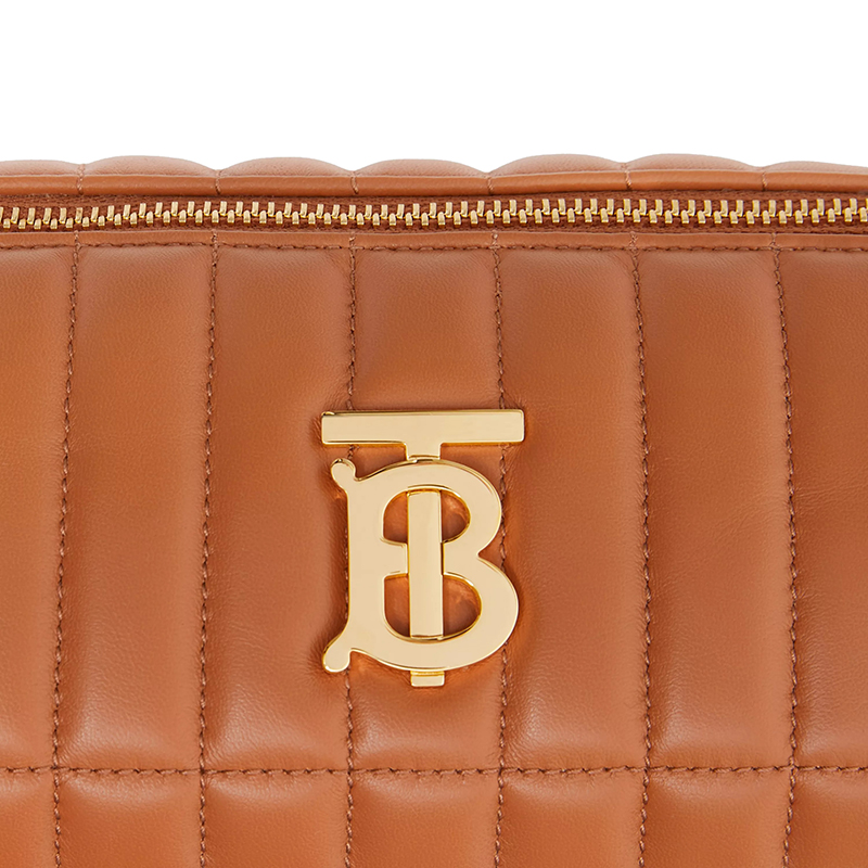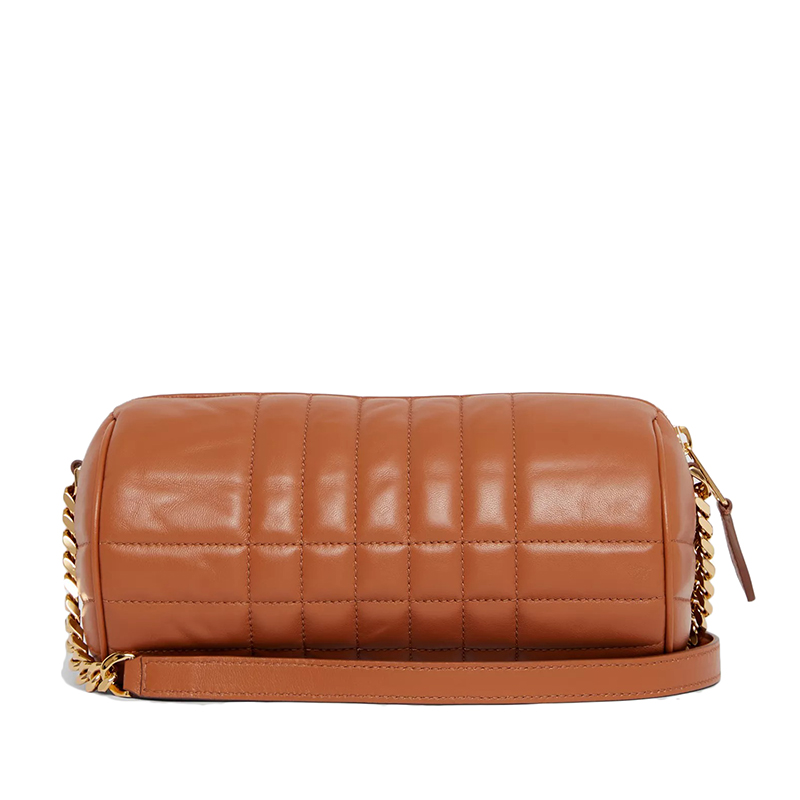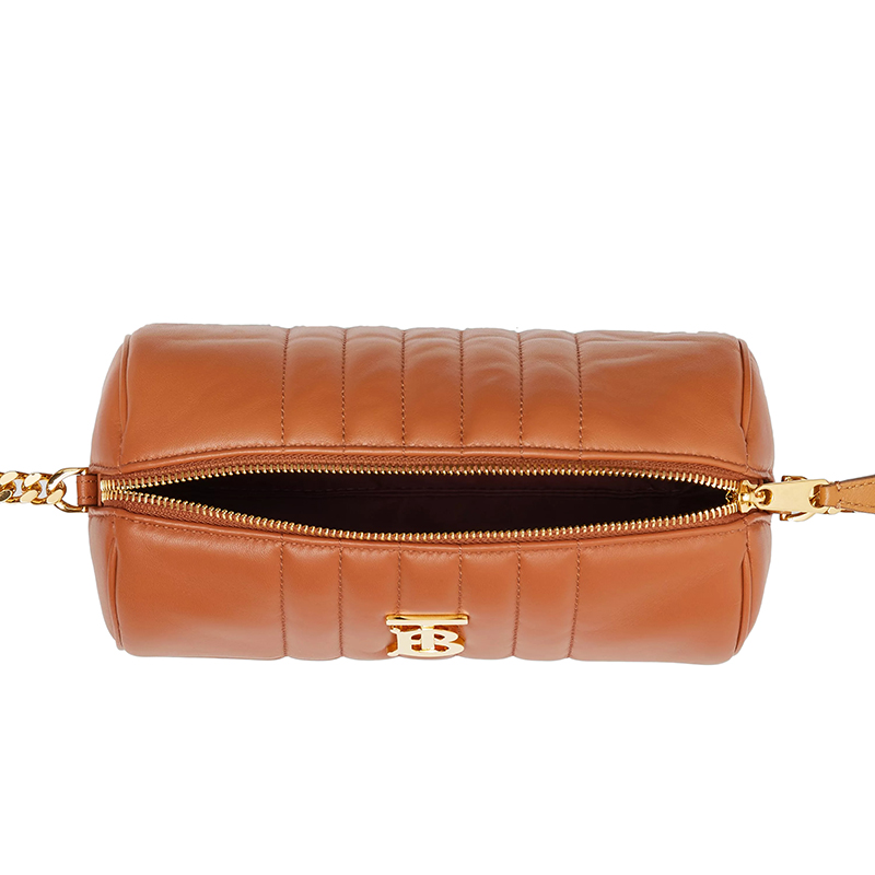 【包税】BURBERRY/博柏利 21秋冬新款Lola系列 女士枫棕色绗缝羊皮革TB专属标识polochon圆柱形斜挎单肩包80492201