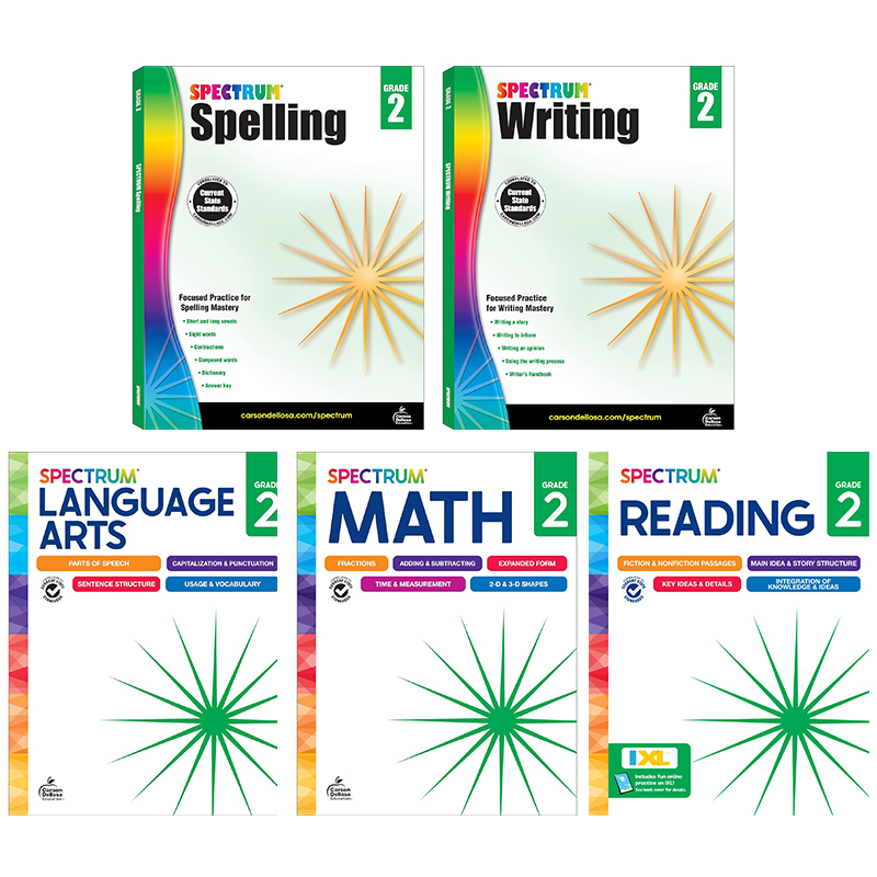 2nd grade reading booksSupport your child's reading journey with the Spectrum Grade 2 Reading Workbook!Spectrum's second grade reading books are a great way for your child to learn reading skills through a variety of activities that are both fun AND educational! Why You'll Love This Second Grade WorkbookEngaging and educational reading passages and activities. Nonfiction and fiction passages with activities to identify main idea and story structure help inspire learning into your child's classroom or homeschool curriculum.Helping your child along the way. Lesson reviews test your child's knowledge before moving on to new and exciting lessons. Parent support pages are included at the beginning of each chapter with helpful definitions, tools and tips, and a skills list to provide a spectrum of support for your leaner. An answer key is included in the back of the 2nd grade workbook to track your child's progress and accuracy. Practically sized for every activity. The 192-page reading comprehension 2nd grade workbook is sized at about 8" x 11"—giving your child plenty of space to complete each exercise.About Spectrum For more than 20 years, Spectrum resources have provided a spectrum of support to meet the individual needs of learners! Whether it is at home or in the classroom, Spectrum's research-supported instruction and activities provide additional practice with grade-level concepts to reiterate skills, support existing curricula, and close learning gaps.The Spectrum Grade 2 Reading Workbook Contains:Illustrated activities with lesson reviewsAnswer keyParent support pages at the beginning of each chapter.