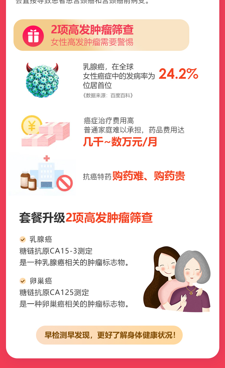 【健康常乐套餐】全身体检包含胸部、颈椎DR、11项彩超、妇科基础检查、7项肿瘤检查、肝肾功能等
