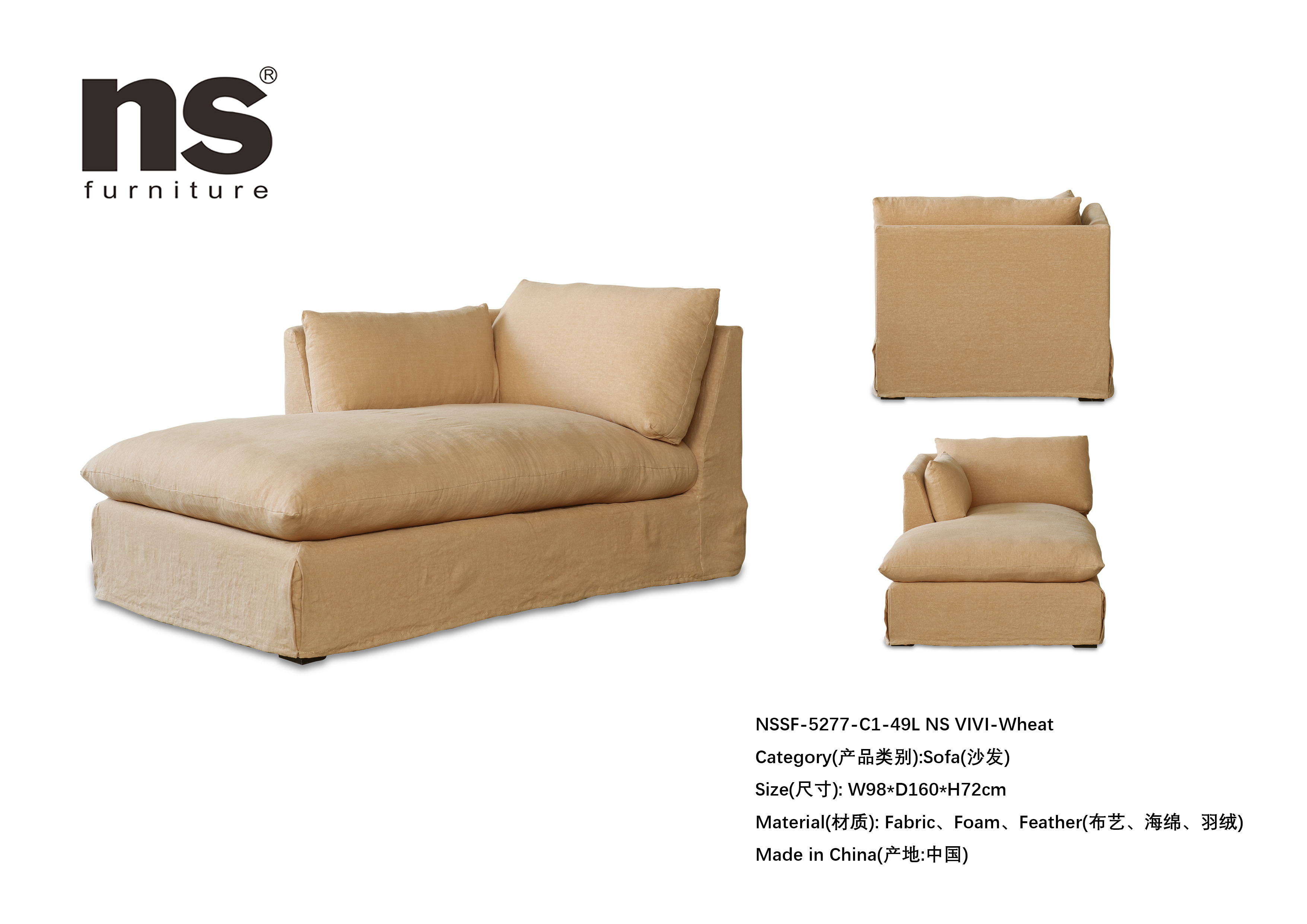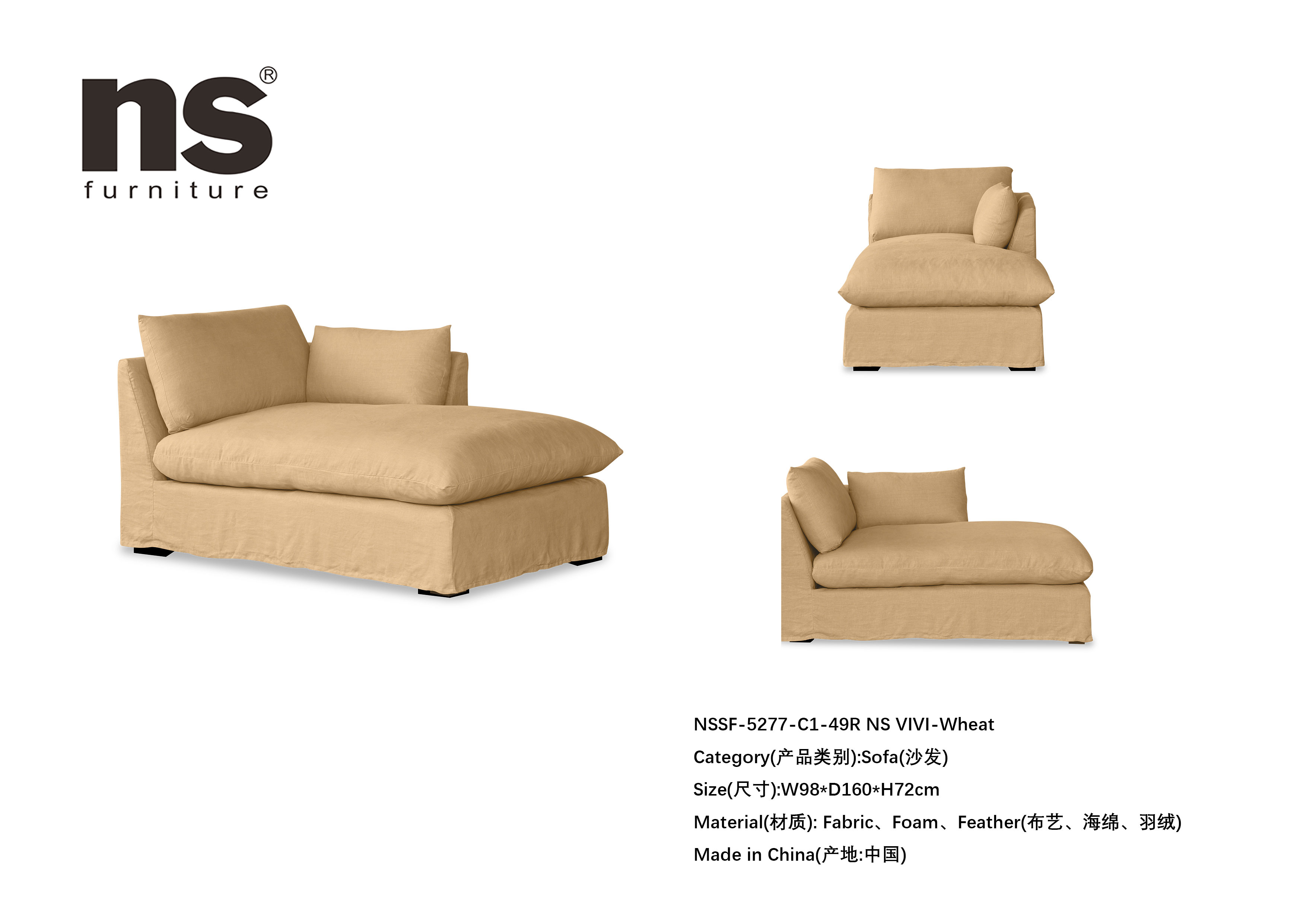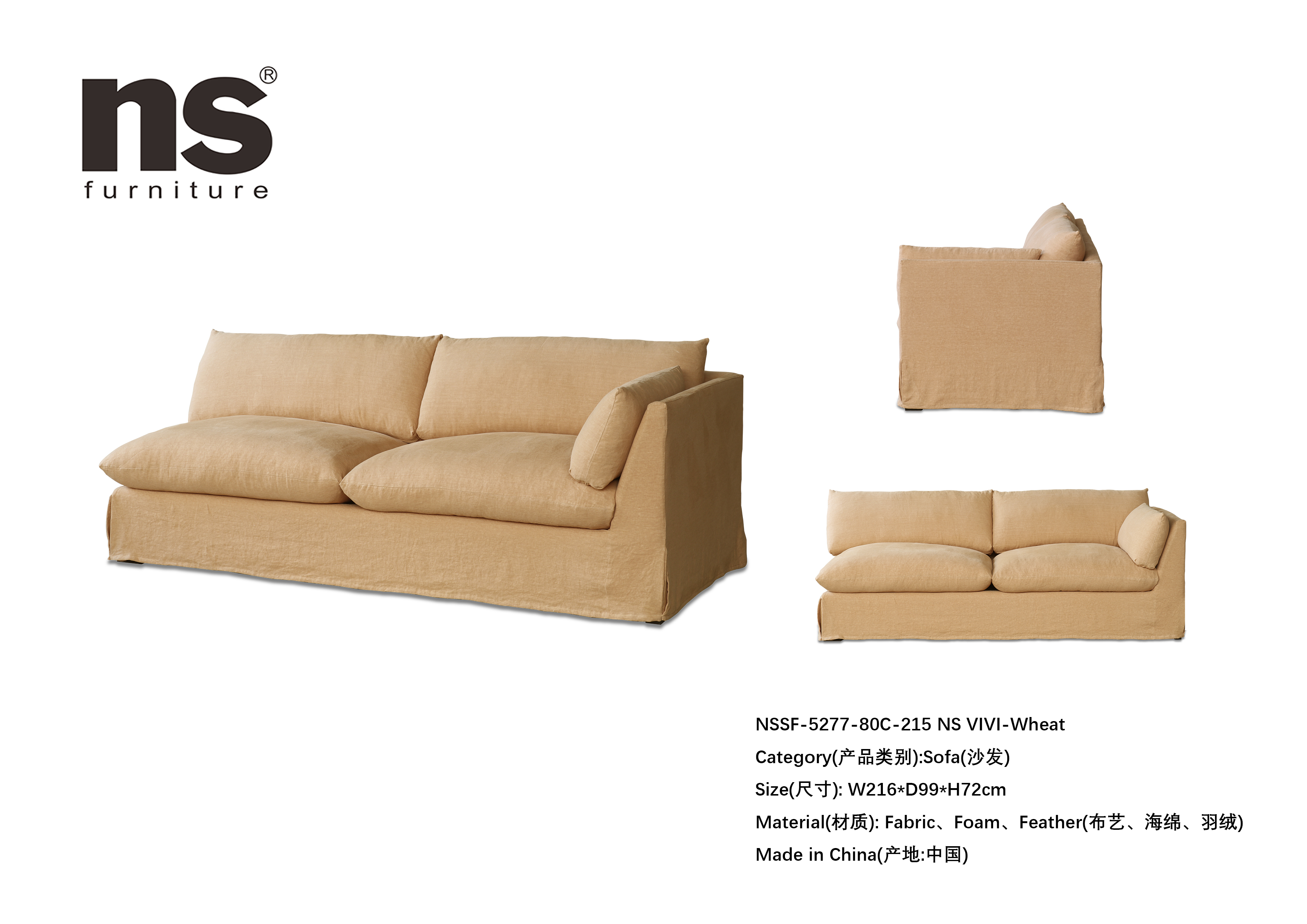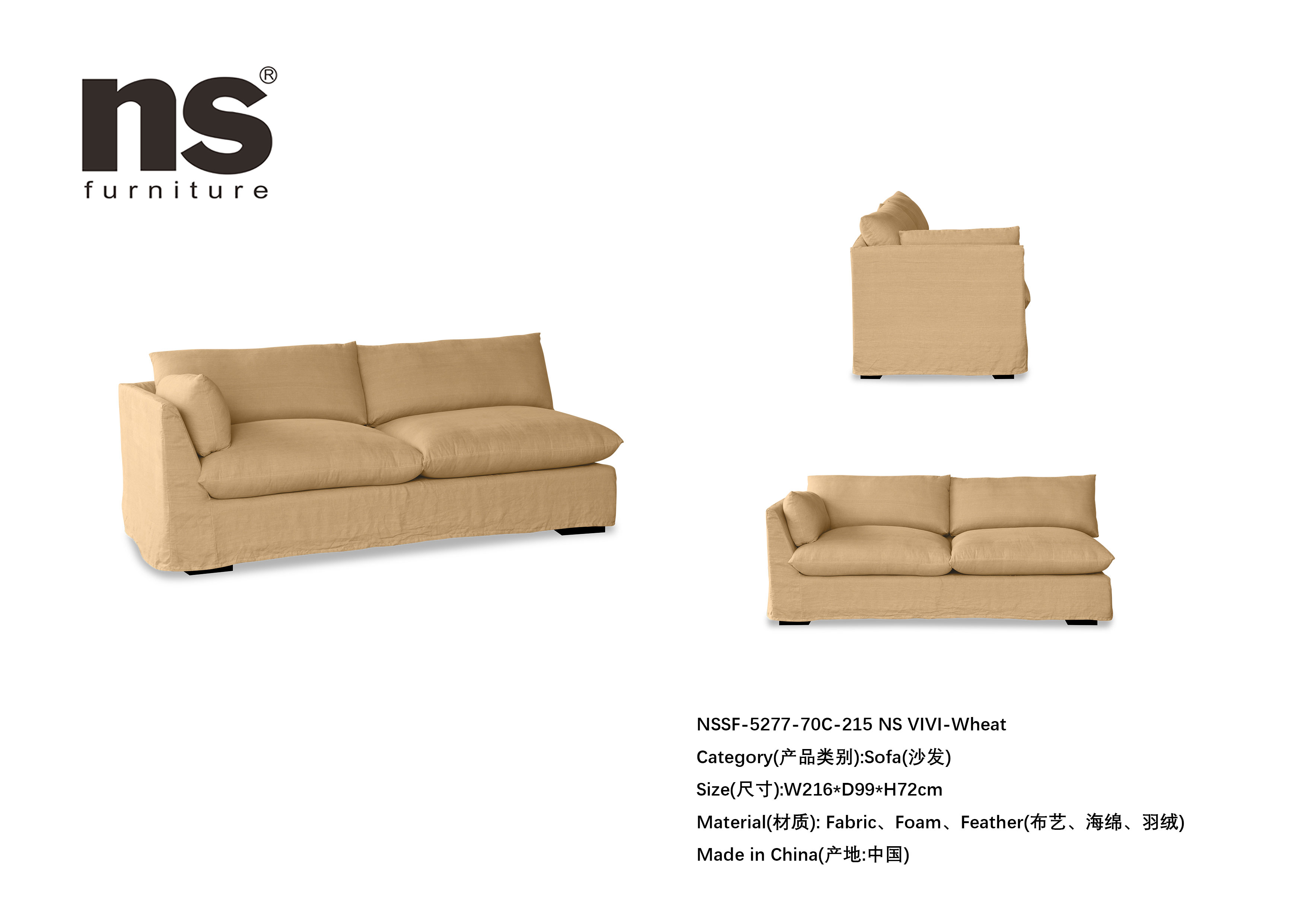 NS家居nsfurniture软包布艺组合沙发NSSF-5277-C1-组合 NS Vivi-Wheat