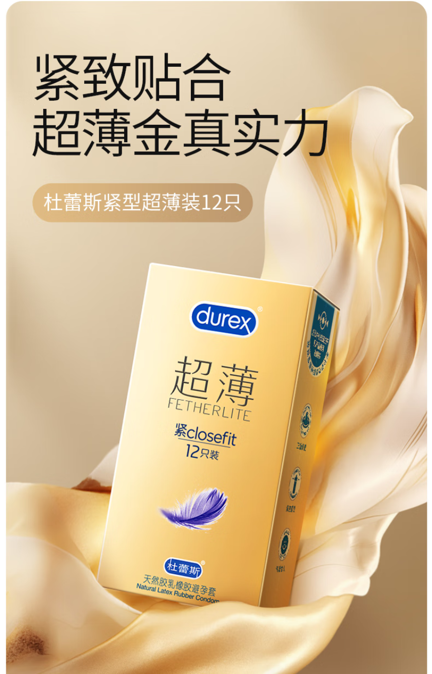 杜蕾斯(durex)避孕套小号 紧型超薄隐feel男女用物理延时套套 计生成人情趣用品 紧型超薄12+紧型12