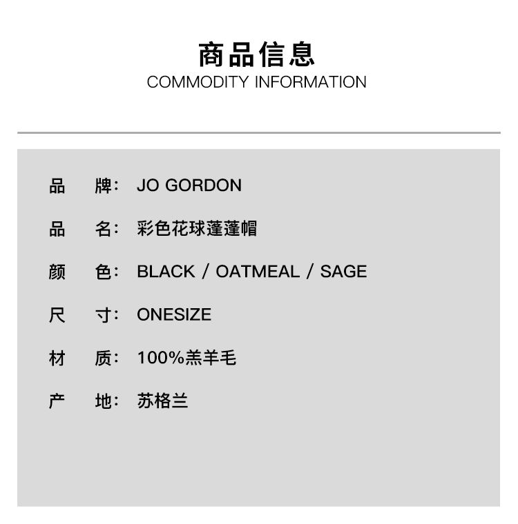 JO GORDON Brushed Plain Hat 羊羔毛彩色花球蓬蓬帽 毛线帽