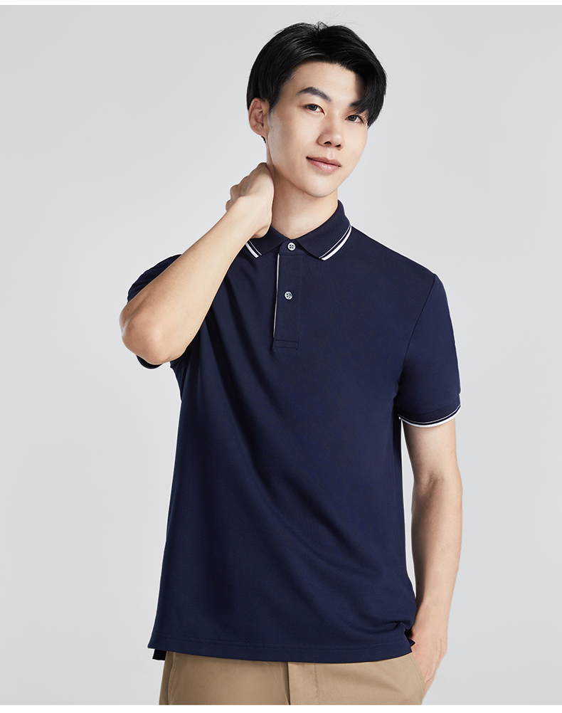 十如仕拒水汗无痕条纹镶边短袖POLO衫P01-04