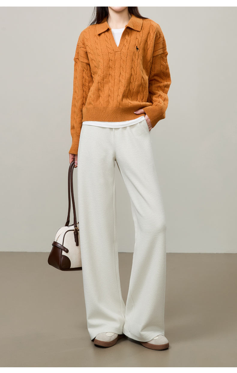 【双12特惠-休闲-阔腿裤】逸阳秋新款高腰肌理感垂顺弹力宽松直筒休闲裤子8148
