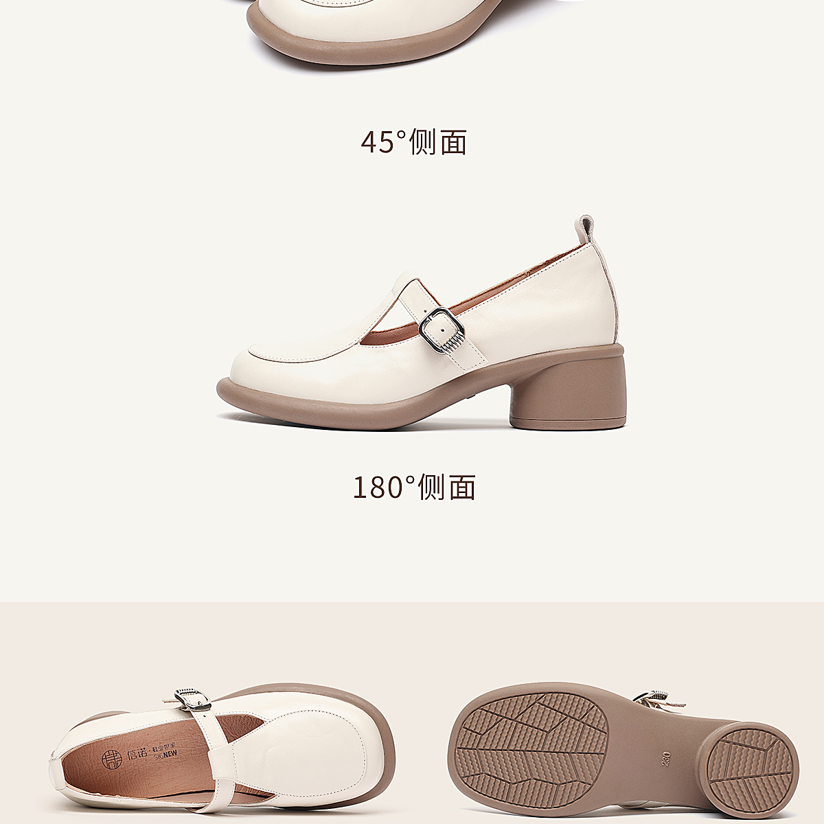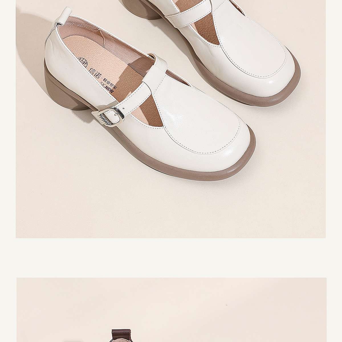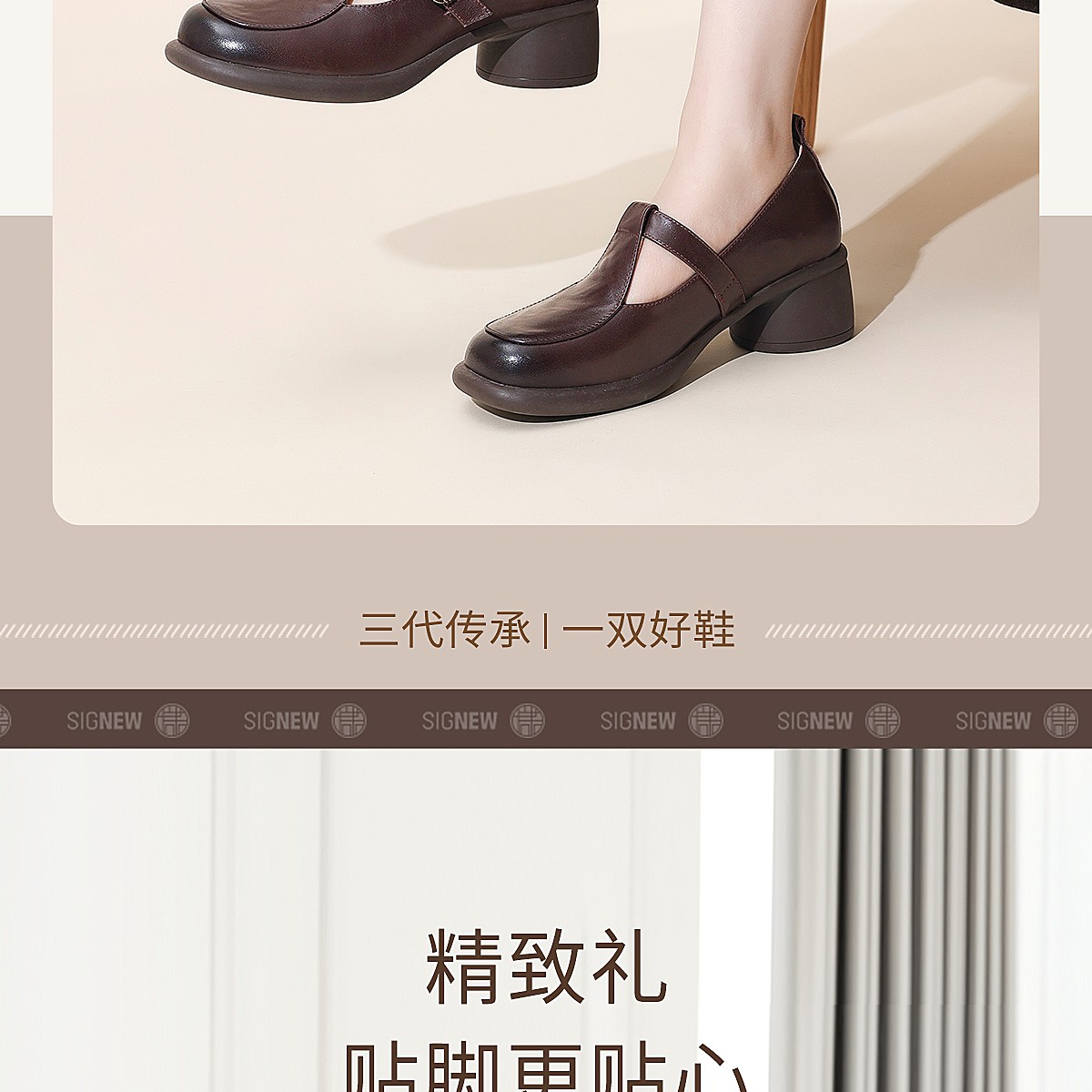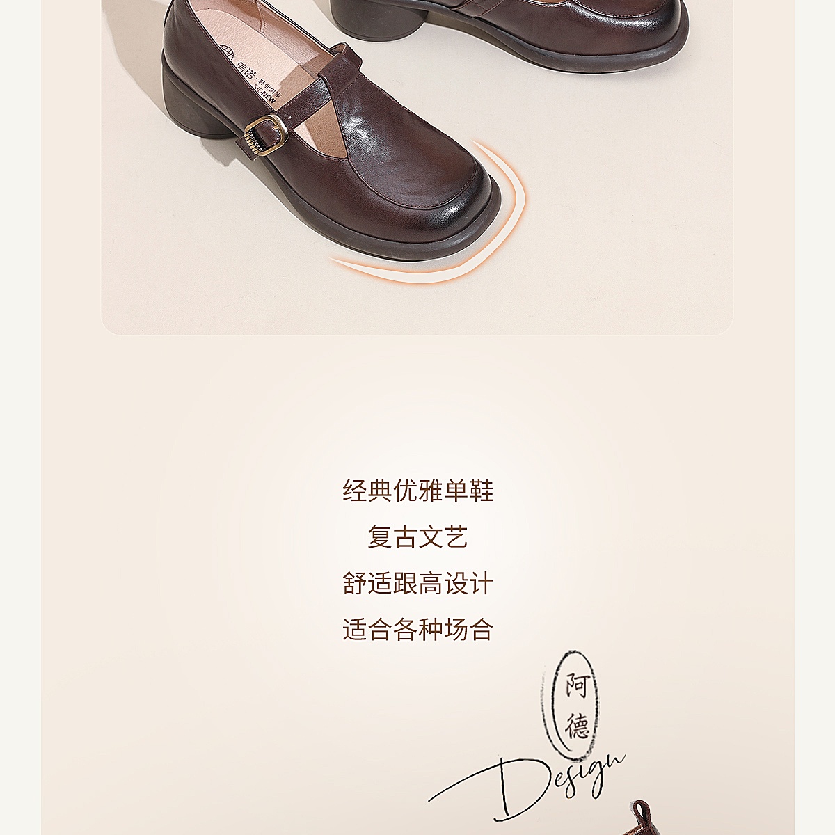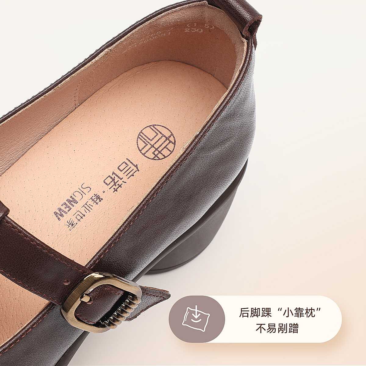 真皮玛丽珍鞋女粗跟一字扣带复古舒适单鞋软底皮鞋6C5255-2