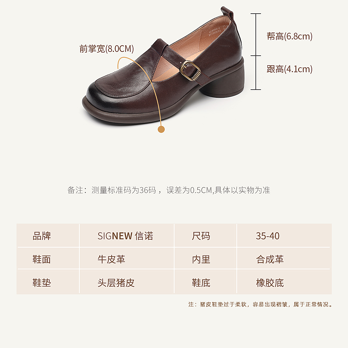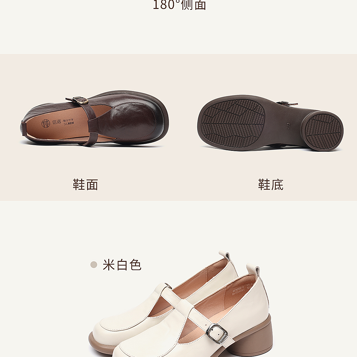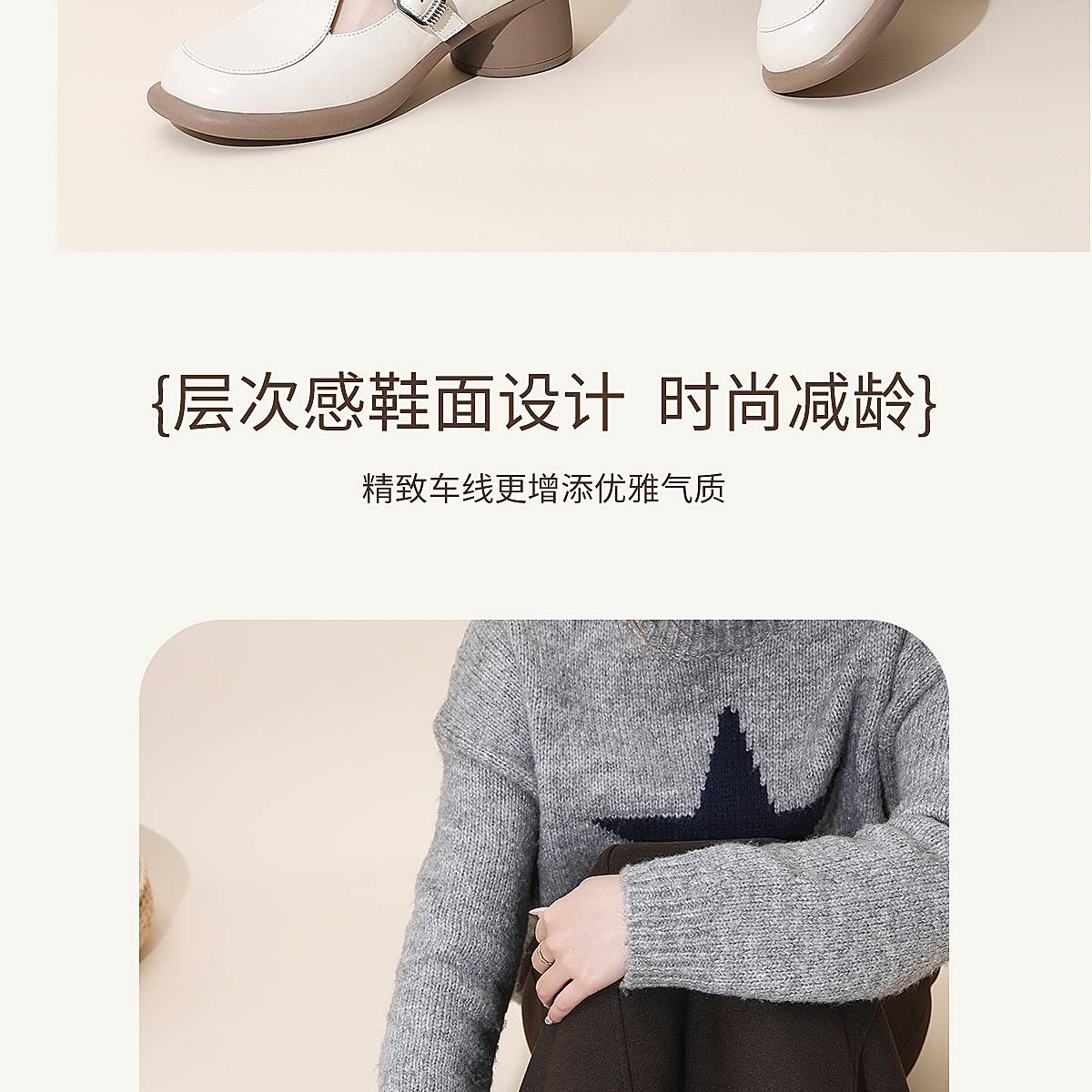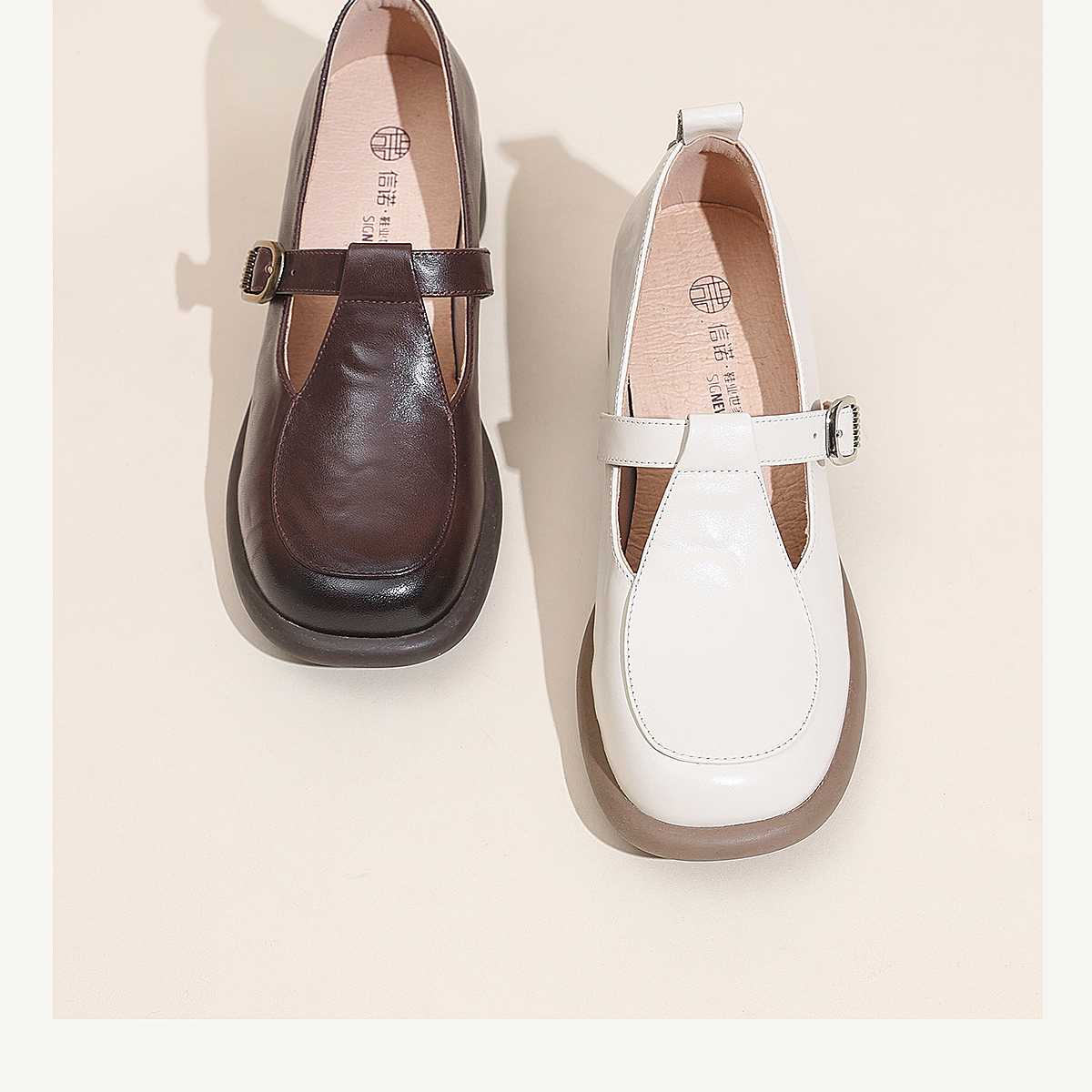 真皮玛丽珍鞋女粗跟一字扣带复古舒适单鞋软底皮鞋6C5255-2