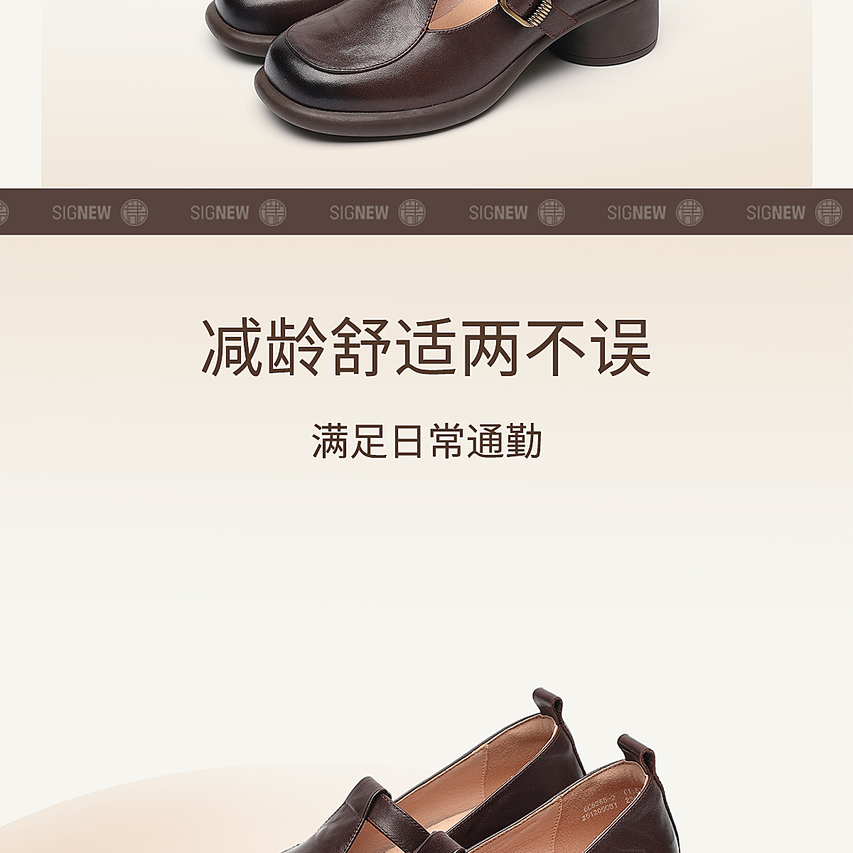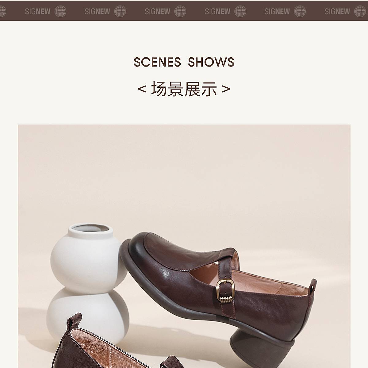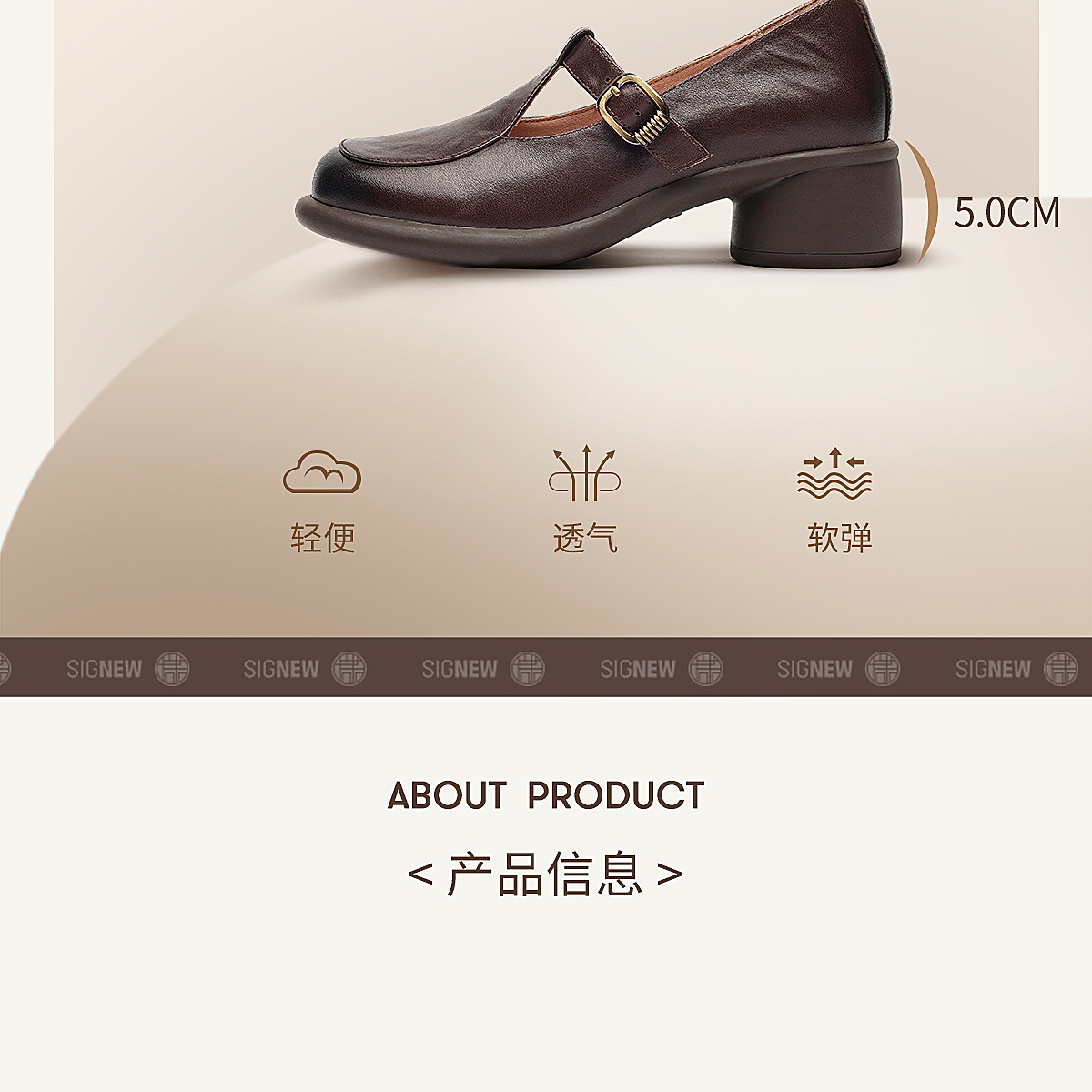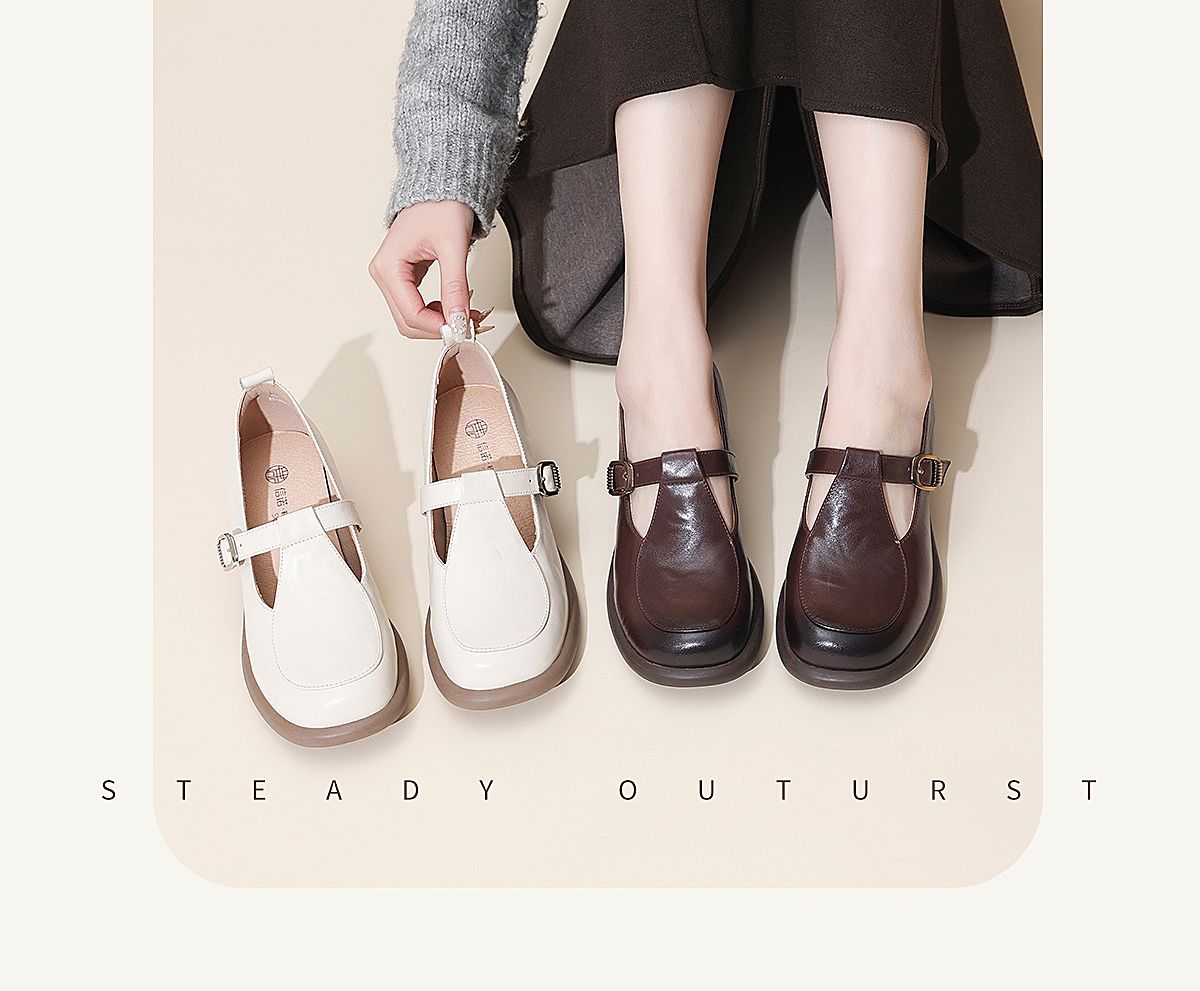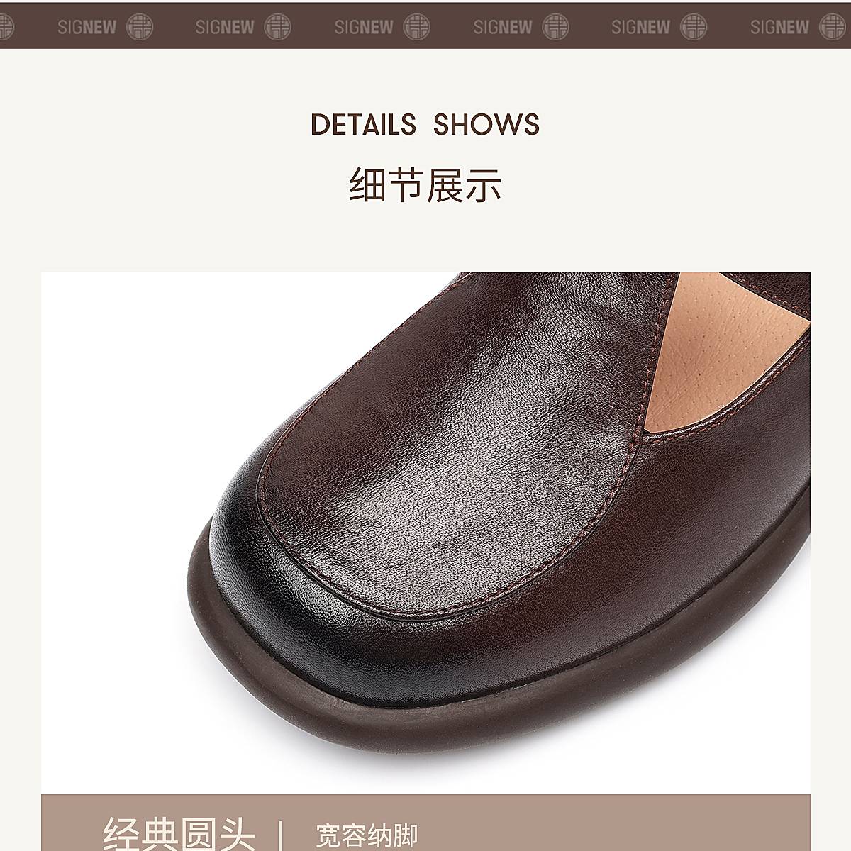 真皮玛丽珍鞋女粗跟一字扣带复古舒适单鞋软底皮鞋6C5255-2