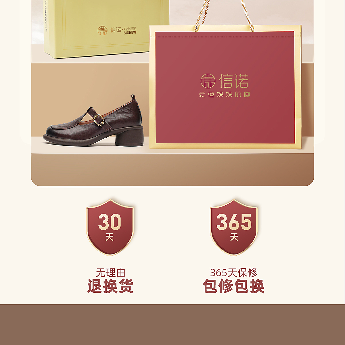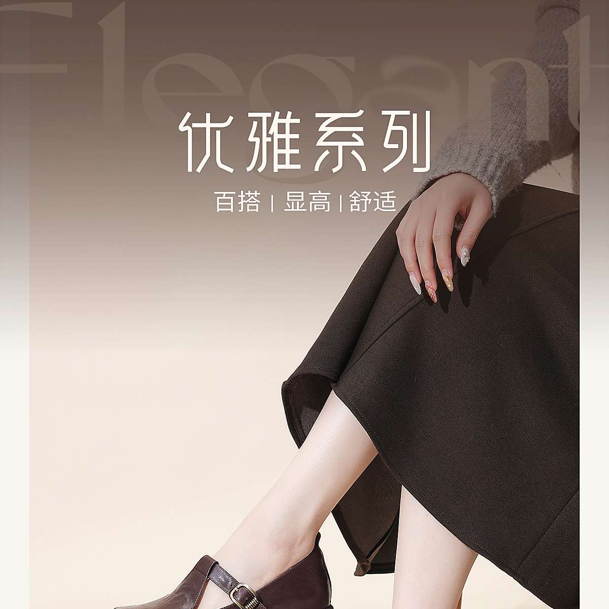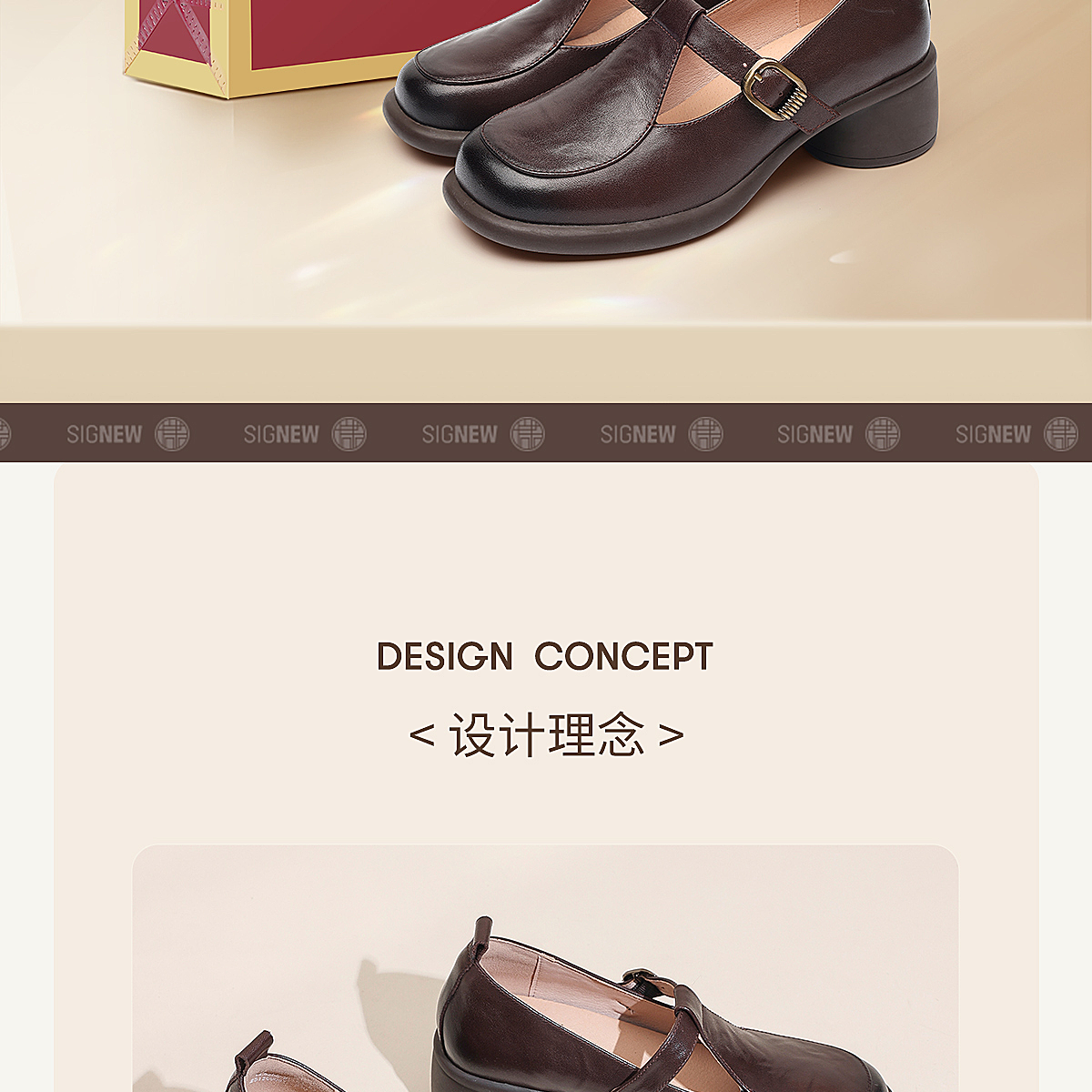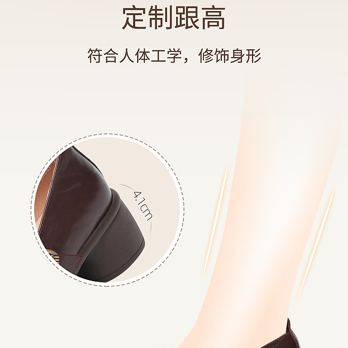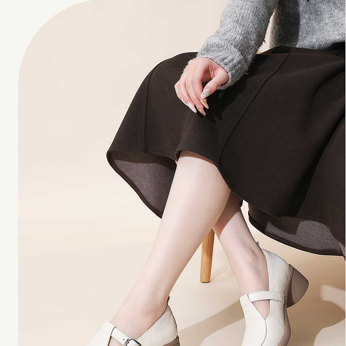 真皮玛丽珍鞋女粗跟一字扣带复古舒适单鞋软底皮鞋6C5255-2