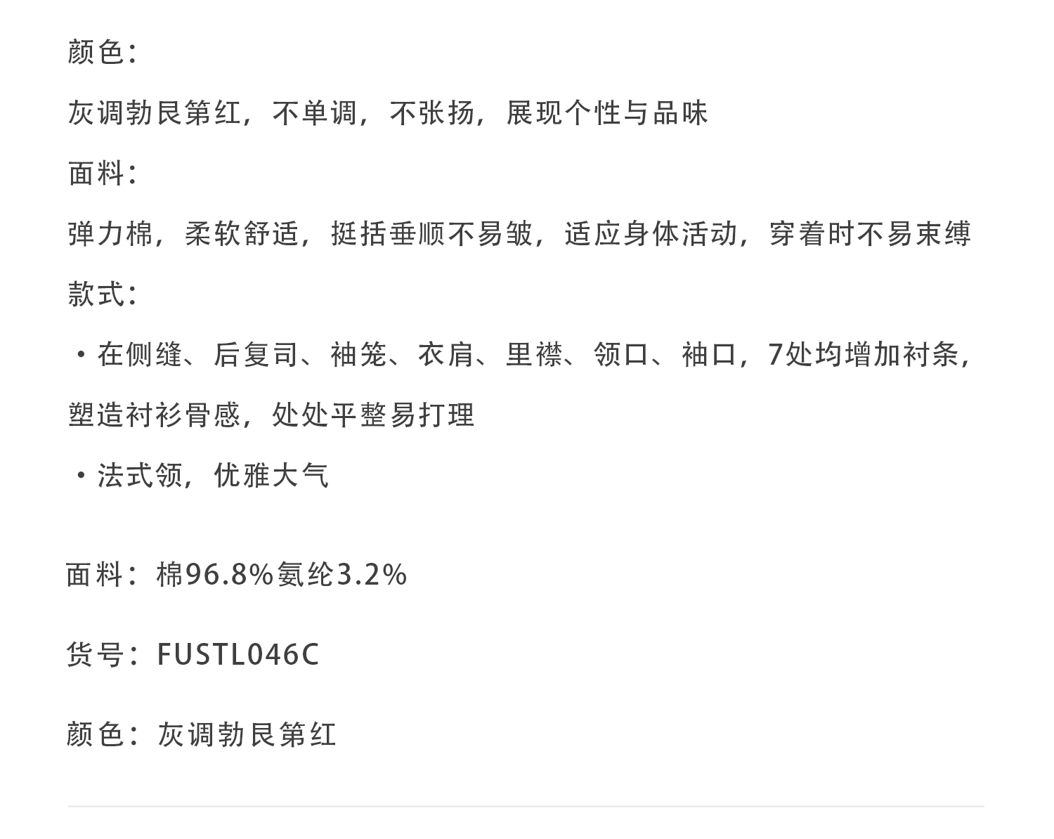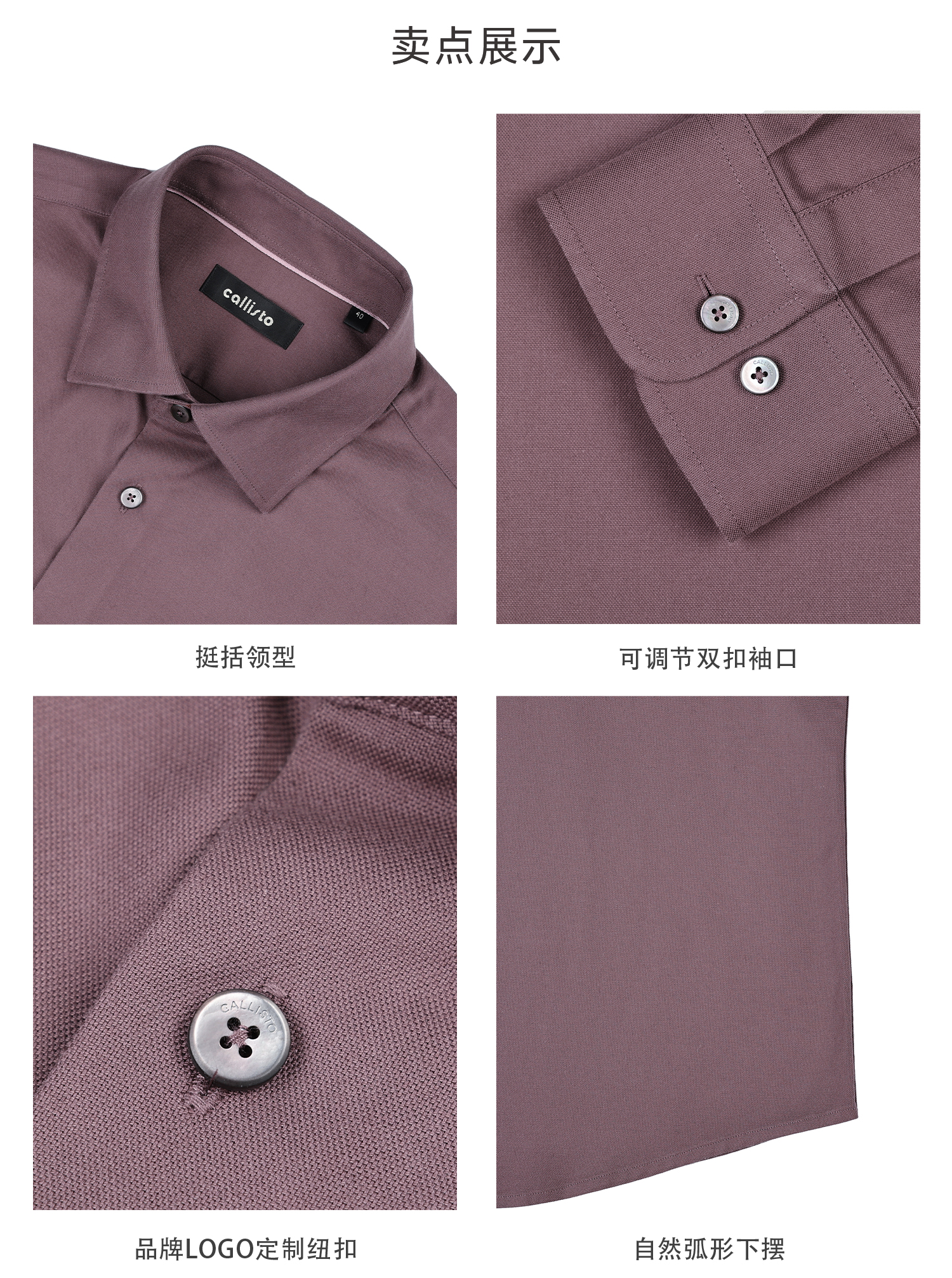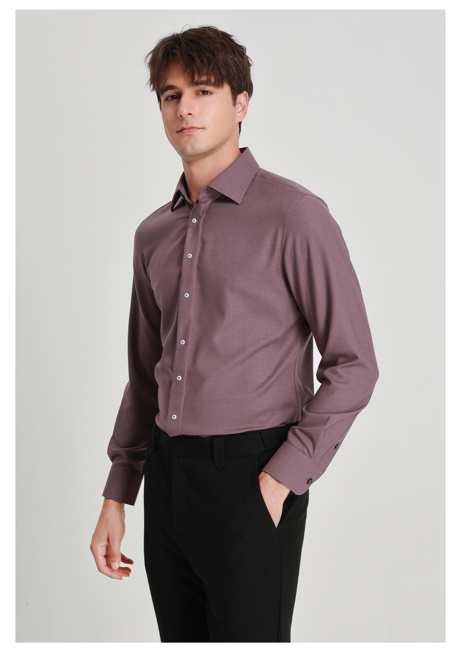 callisto灰调勃艮第红弹力棉长袖衬衫