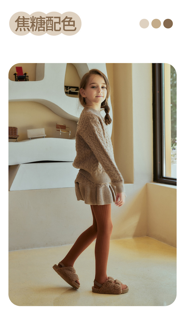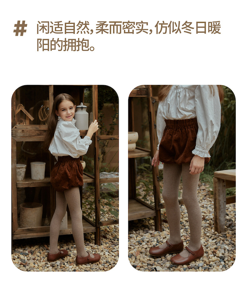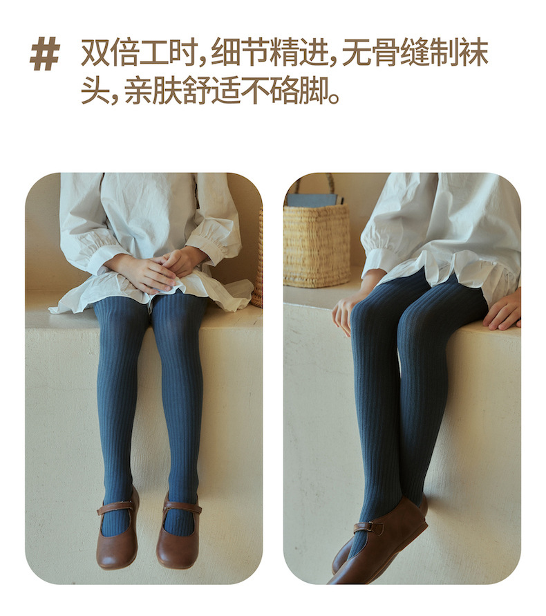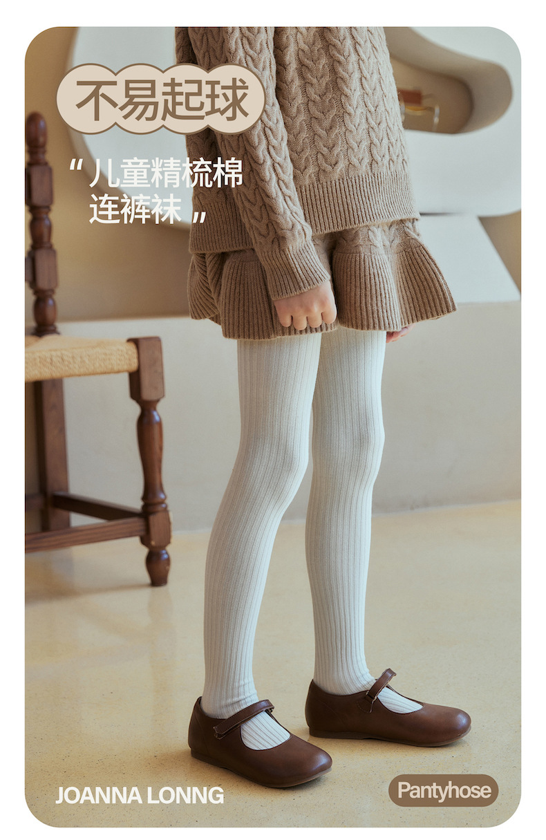 JOANNALONNG Kid's 秋冬儿童新品精梳棉无骨手缝坑条宝宝连裤袜