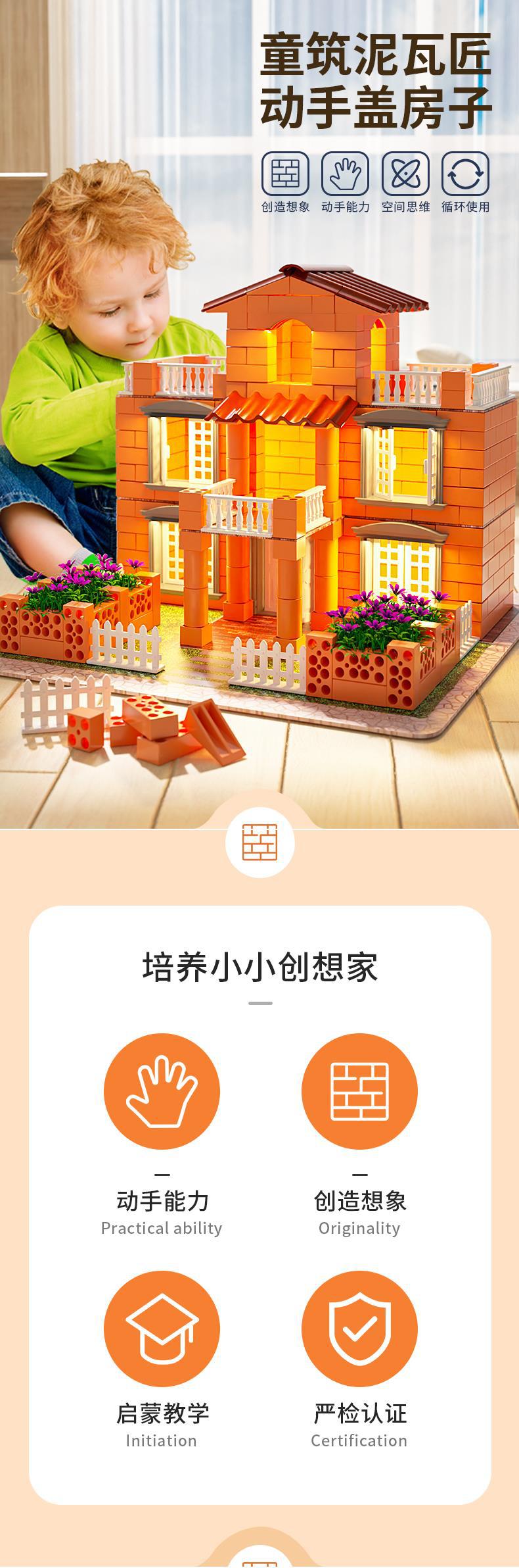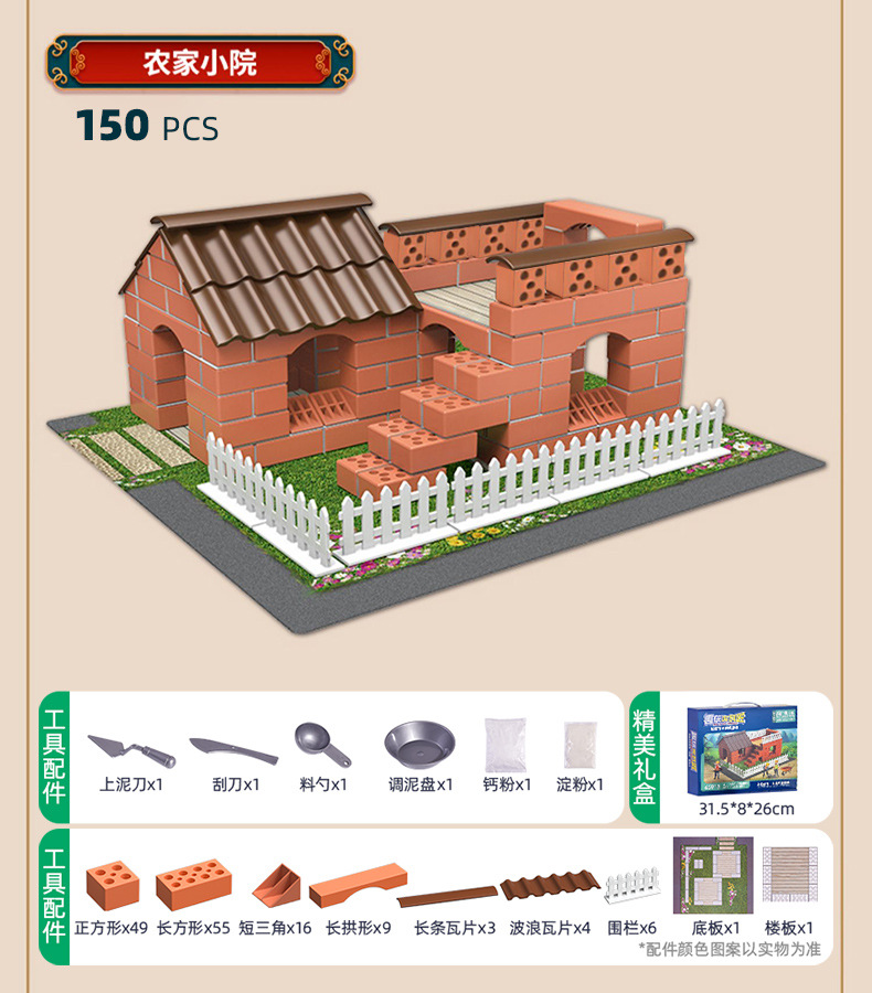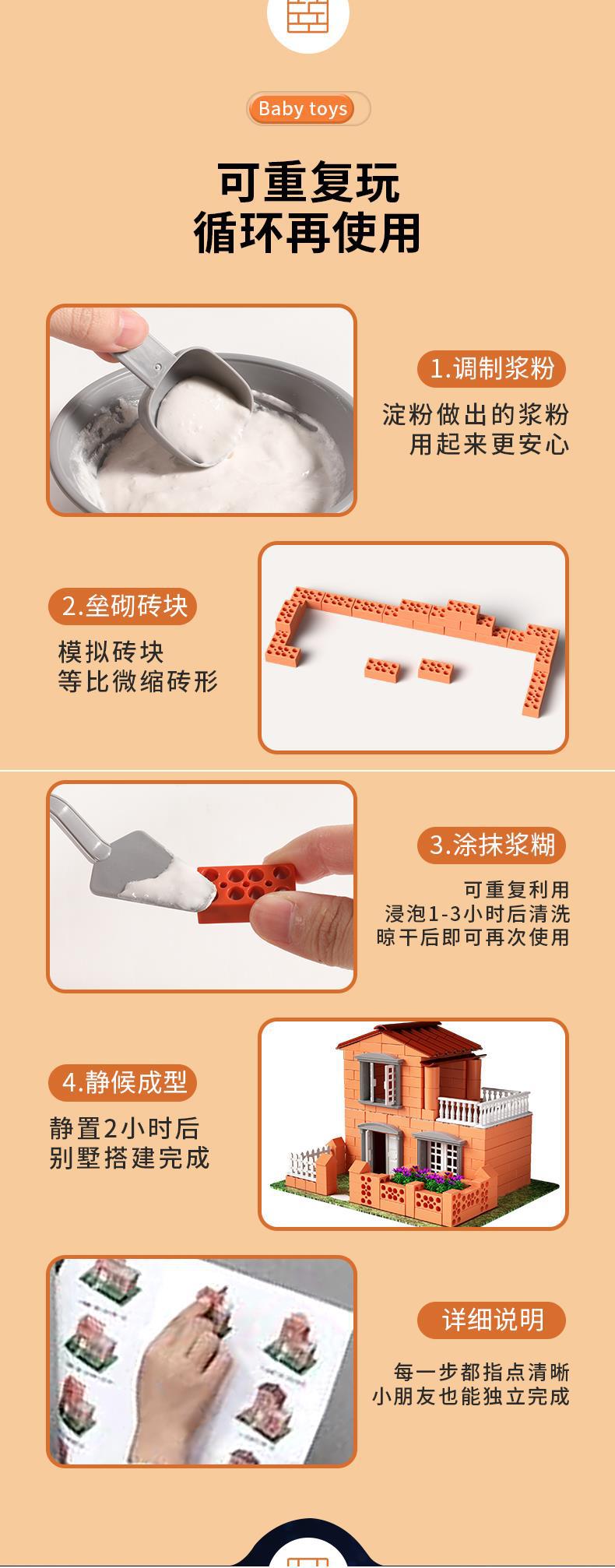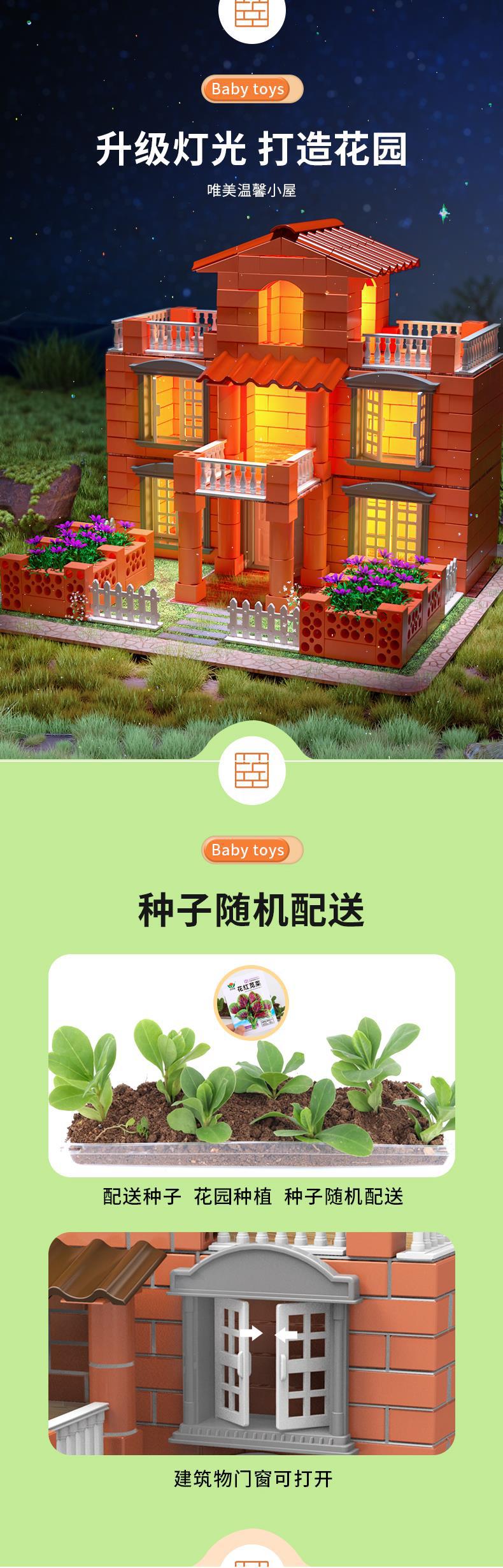 【升级带灯可种植小小泥瓦匠】高配版水溶再用多可多次搭建小小泥瓦匠diy手工造盖房子建筑师砌墙砖块水泥小屋男孩玩具儿童节礼物