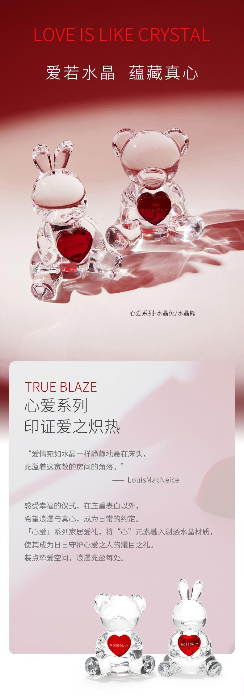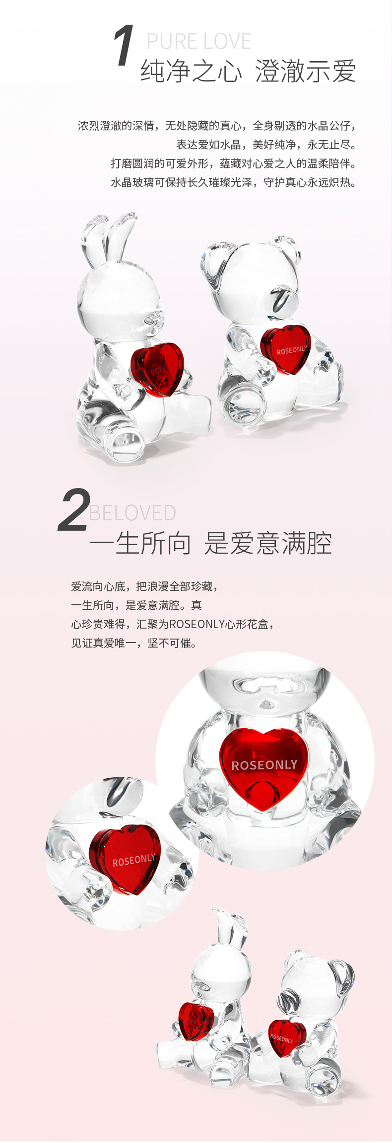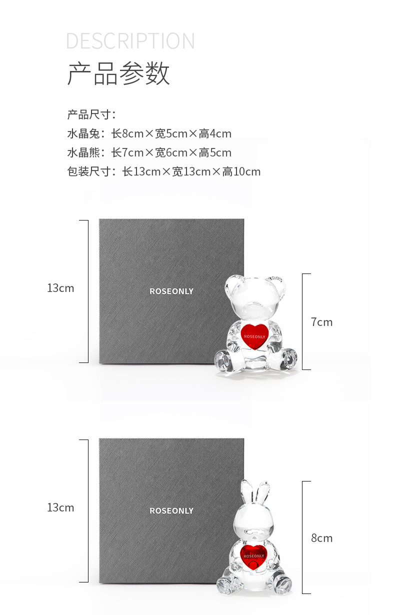【家居摆件】ROSEONLY诺誓 玫瑰家居-心爱系列 水晶熊兔 送爱人女友精美礼品 家居摆件