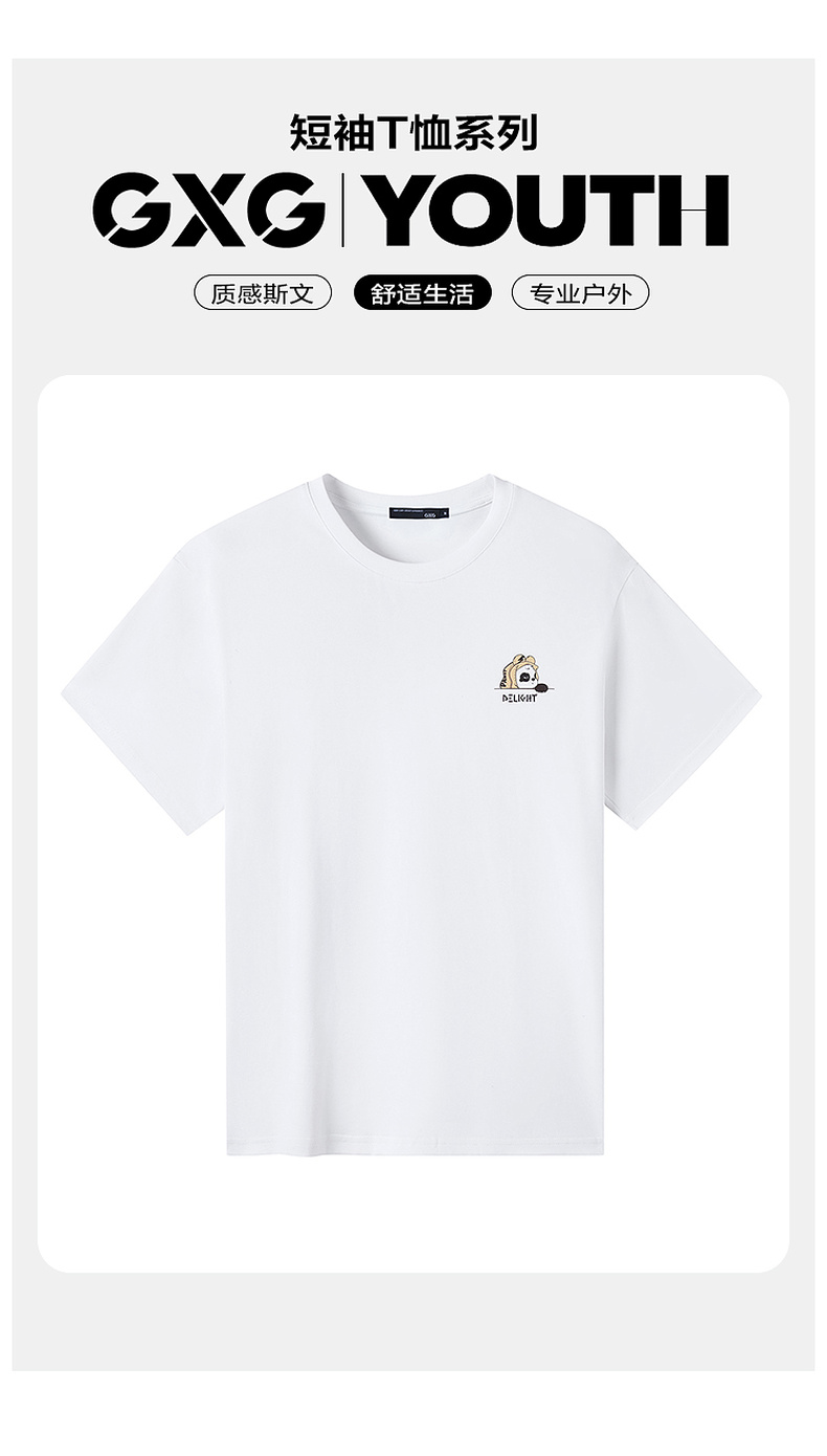 GXG男装 265g重磅字母绣花简约时尚圆领短袖T恤男士 夏季新品