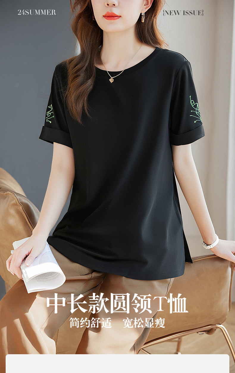 宽松短袖女t恤2025新款休闲黑色上衣胖mm大码女装夏季遮肚体恤衫