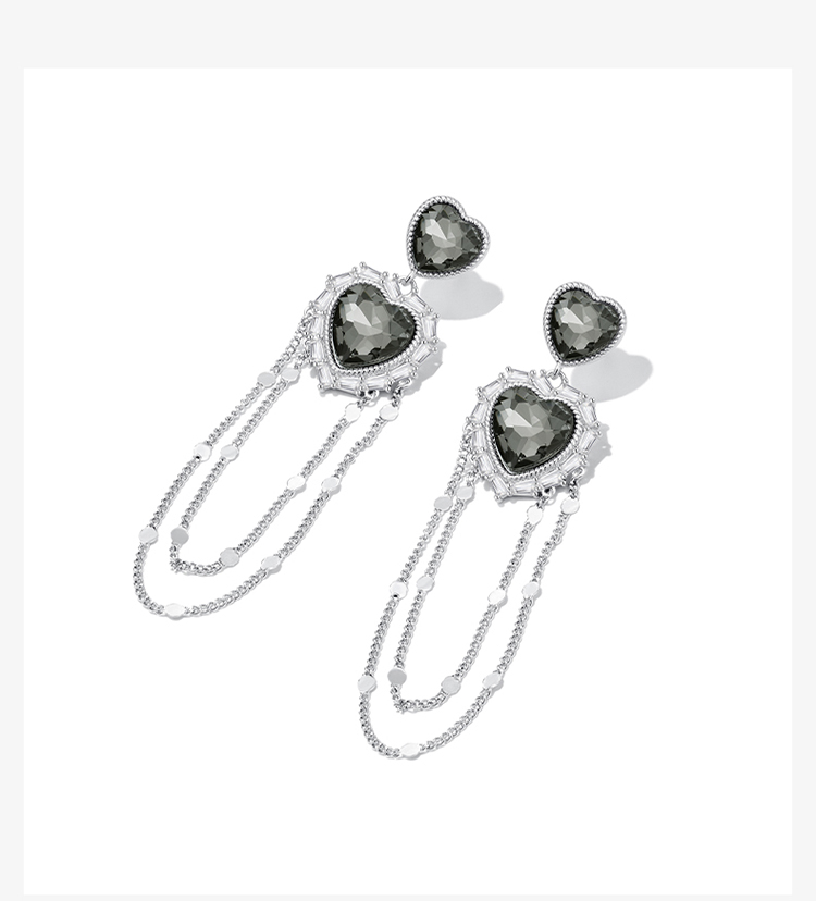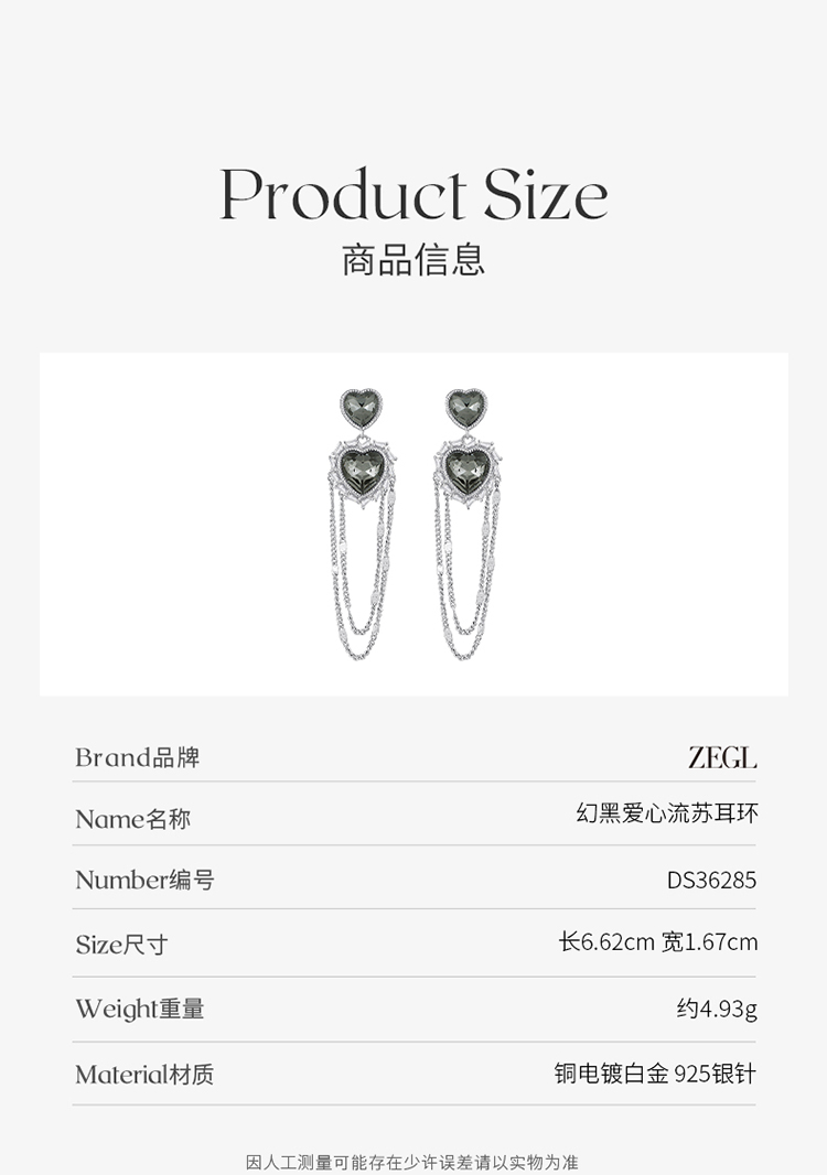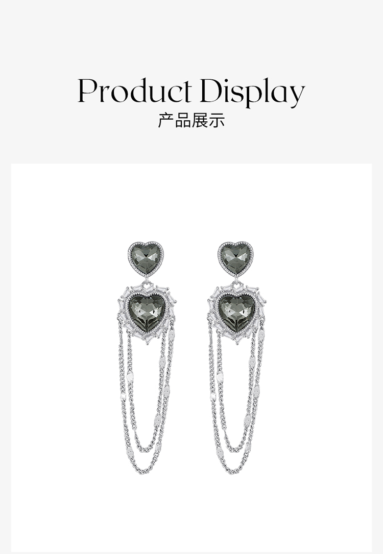 ZEGL设计师黑公主系列爱心流苏耳环女法式耳钉925银针秋冬耳饰品