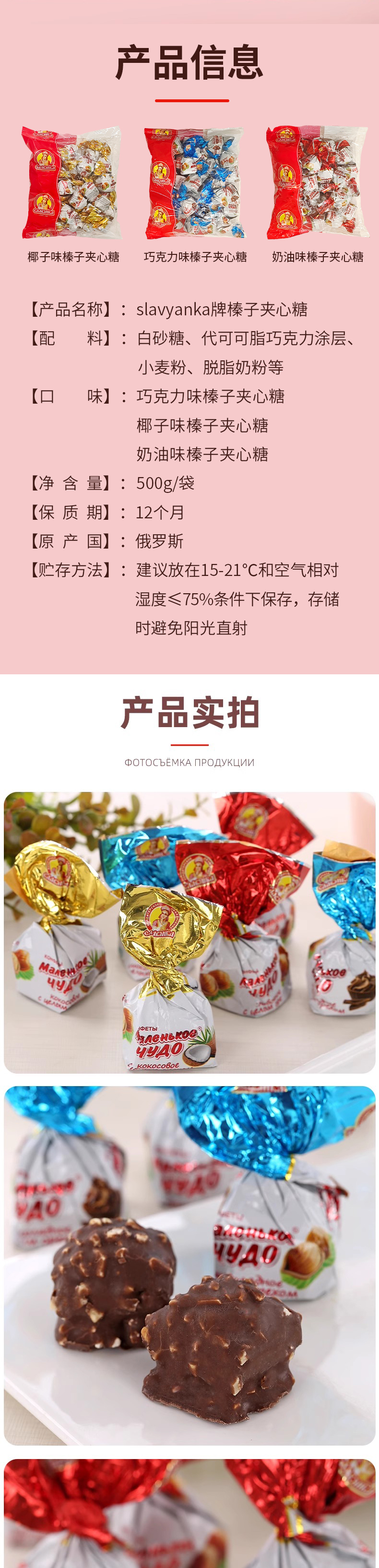 俄罗斯进口slavyanka椰子味I 奶油味I 巧克力味榛子夹心糖500g