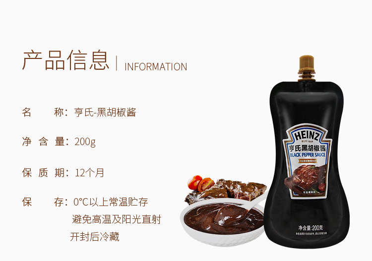 200g 亨氏 黑胡椒酱 牛排酱黑椒汁意面酱烤肉酱料 挤挤装