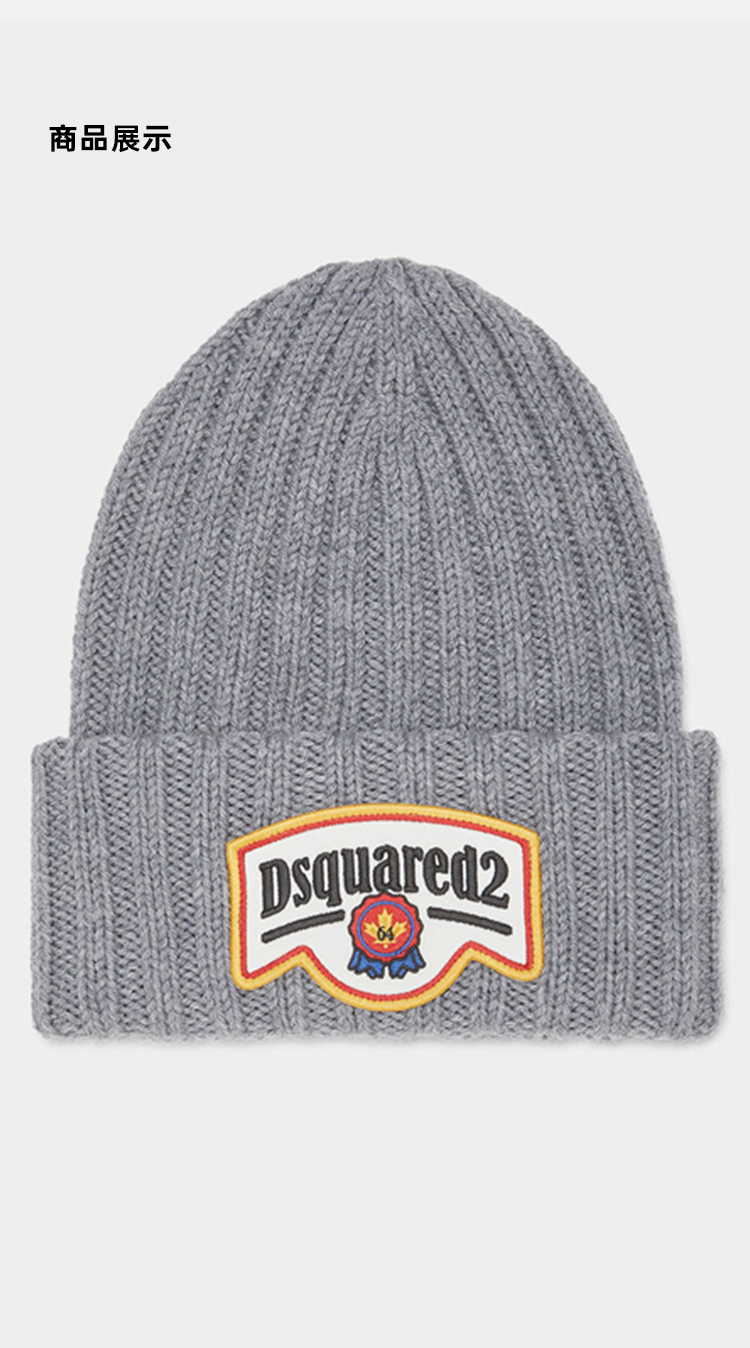 DSQUARED2 男士刺绣贴片羊毛针织帽 灰色 KNM0180 01W00306 2122