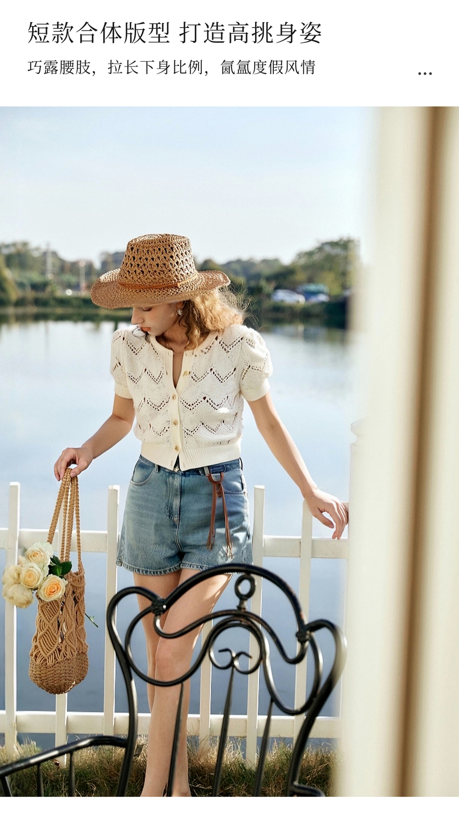 OLrain欧芮儿2025夏季新款白色法式镂空度假风毛针织开衫女上衣