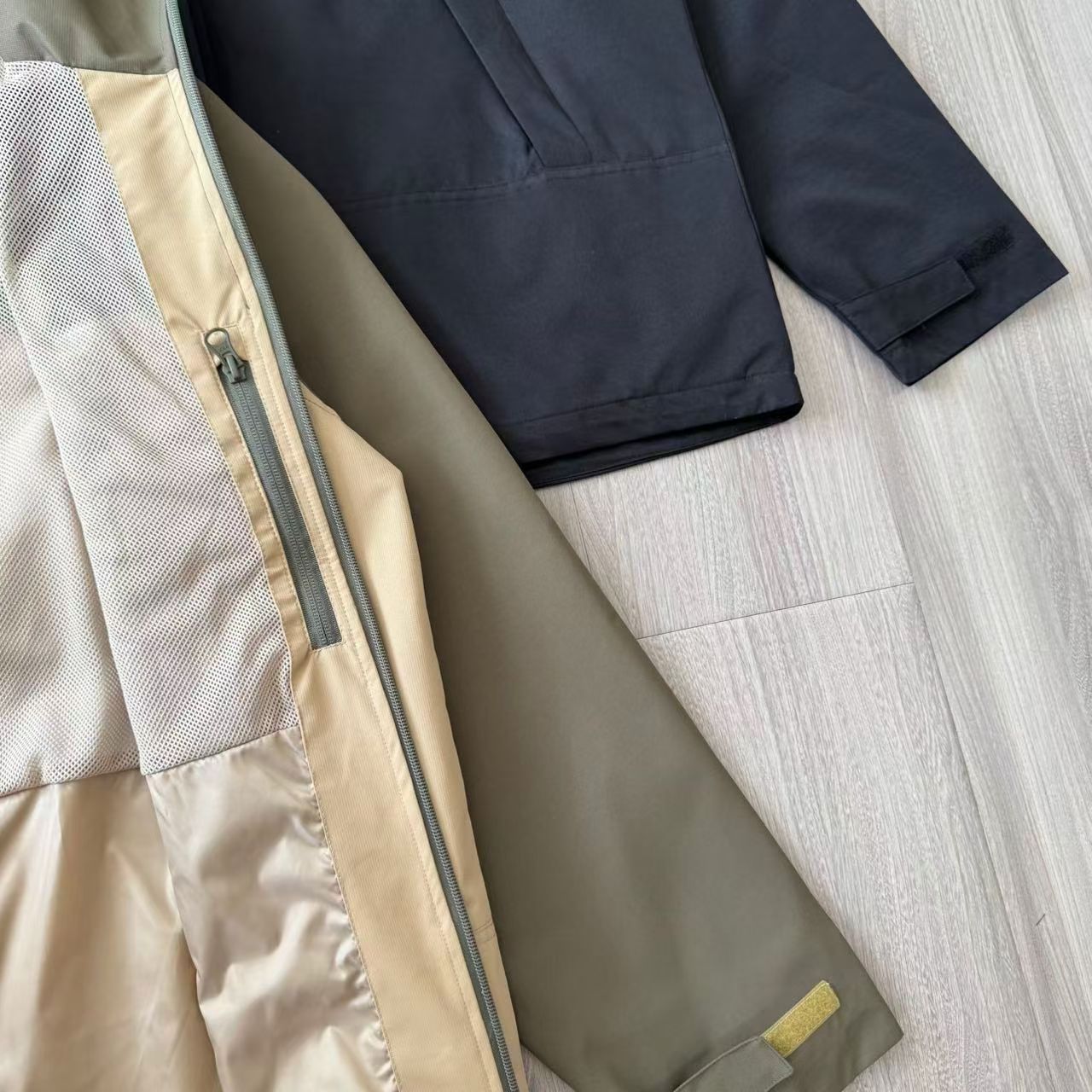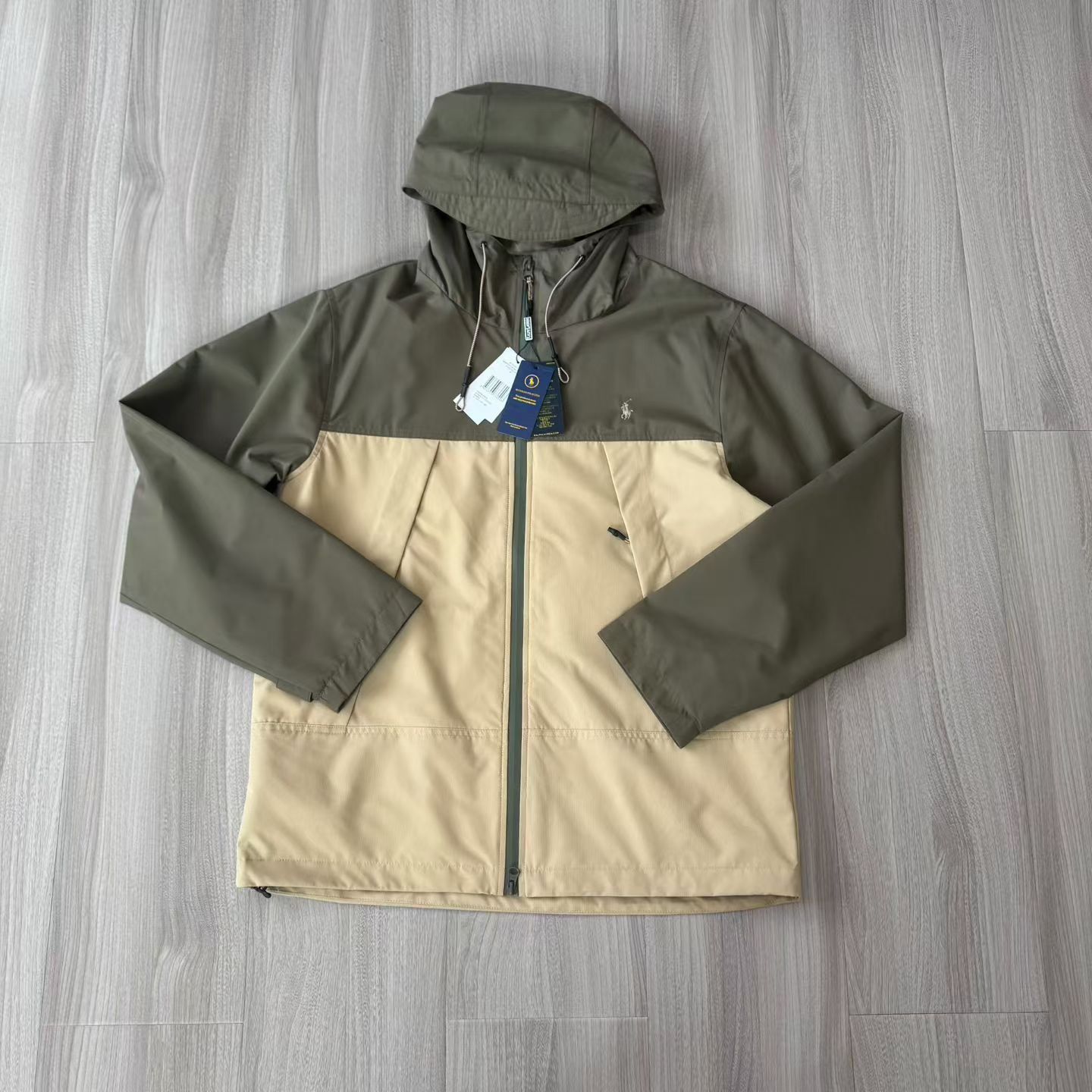 防泼水面料,从容应对多变天气! 采用高密度梭织防泼水面料,表面经特殊工艺处理,可有效抵御日常雨水与户外溅水,让你在突发天气下也能保持干爽舒适,无需担心突如其来的阵雨。 双向YKK拉链+门襟压胶工艺,细节拉满 门襟配备双向 YKK金属拉链,顺滑耐用,可上下自由开合,调节穿搭自由度与通风性;搭配门襟压胶工艺,进一步提升防水密封性,同时加固结构,久用不易变形开胶。 网眼内衬,透气不闷汗,内里采用透气网眼布内衬,既能快速导出身体湿气,避免春秋季穿着闷热黏身,又能增强衣物立体感,穿着挺括不软塌,长时间通勤或户外活动也能保持清爽自在。 经典连帽版型,美式复古氛围感拉满! 可调式抽绳连帽设计,可根据需求调节包裹度,防风又有型;立体剪裁衣身,利落不拖沓,既能内搭高领毛衣、卫衣,也能外搭大衣,轻松适配美式复古、山系户外、商务休闲等多种风格。