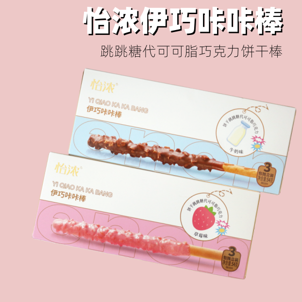 54g 怡浓伊巧咔咔棒 跳跳糖代可可脂巧克力饼干棒 零食装饰饼干 草莓味/牛奶味