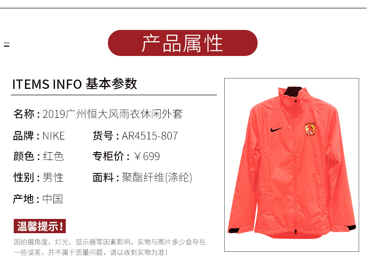 SFS耐克正品2019中超广州恒大风雨衣运动休闲外套AR4515-807
