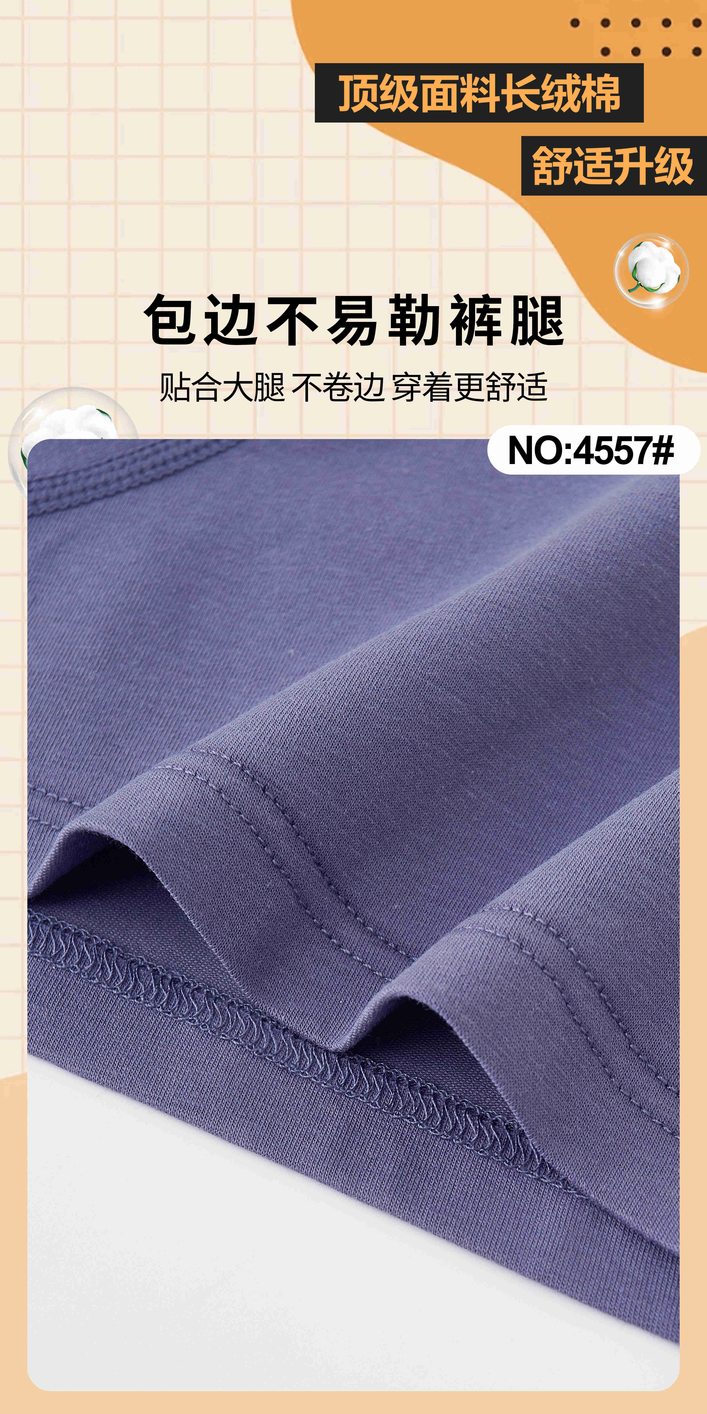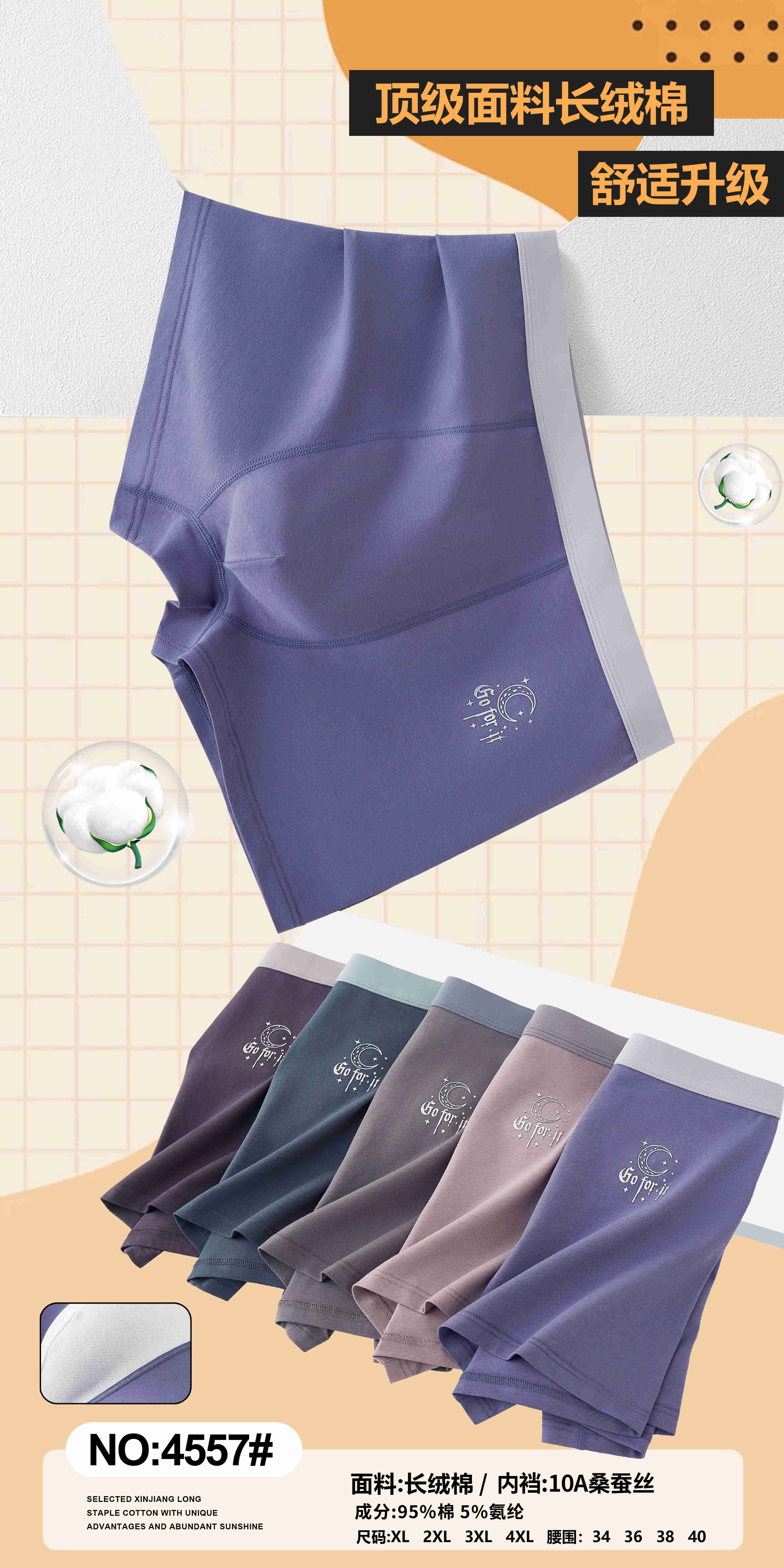 男士长绒棉撞色印花包头平角内裤四角裤舒适透气4557