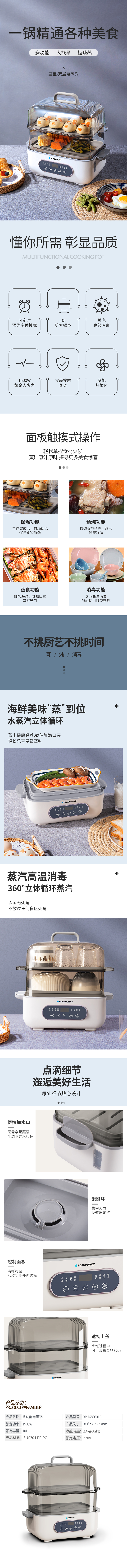 德国蓝宝蒸汽电蒸锅 多功能家用全自动预约隔水炖盅