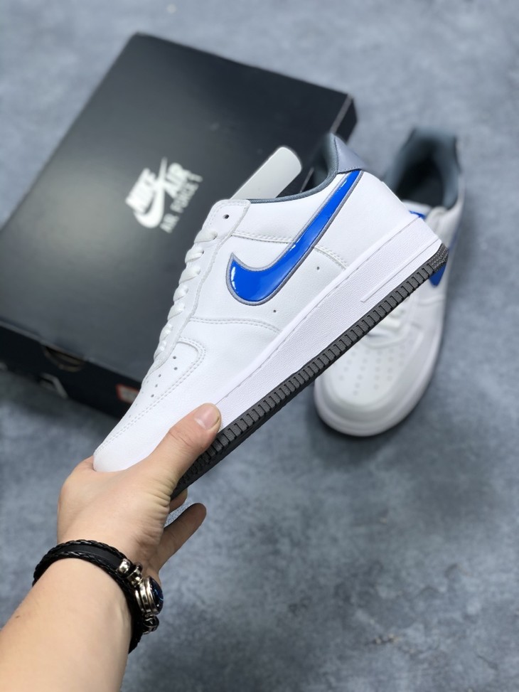 公司级Nike AIR FORCE 1 “白灰镭射蓝勾” 亮眼的色彩搭配 酷炫有劲的进口漆皮材质 透明感十足