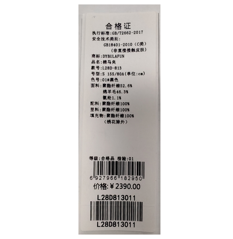 戴布拉芬棉服L26D801