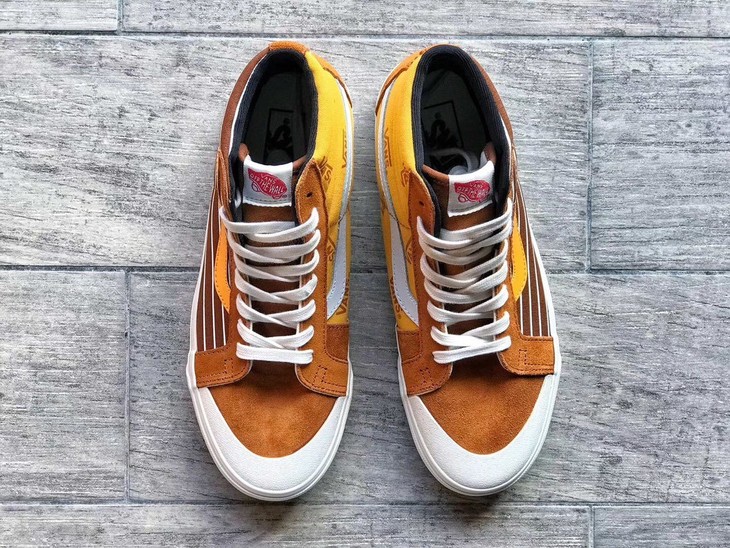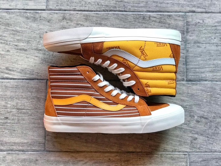 Vans不对称条纹拼接包头硫化板鞋 棕黄 蓝白推出全新 Style 138 ComfyCush LX Sk8半月形包胶头采用帆布和麂皮材质不对称