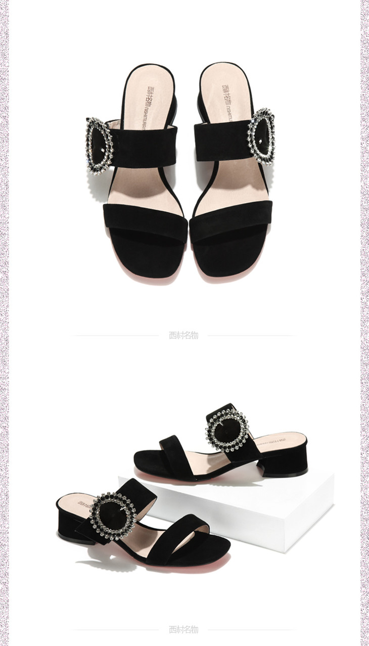 西村名物夏季复古玛丽珍凉鞋拖鞋X282J20511