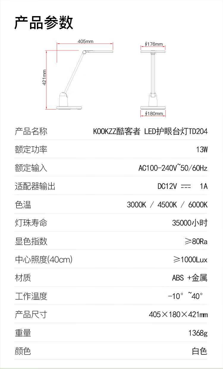 【分仓直发包邮】KOOKZZ酷客者国AA级学习护眼台灯TD204
